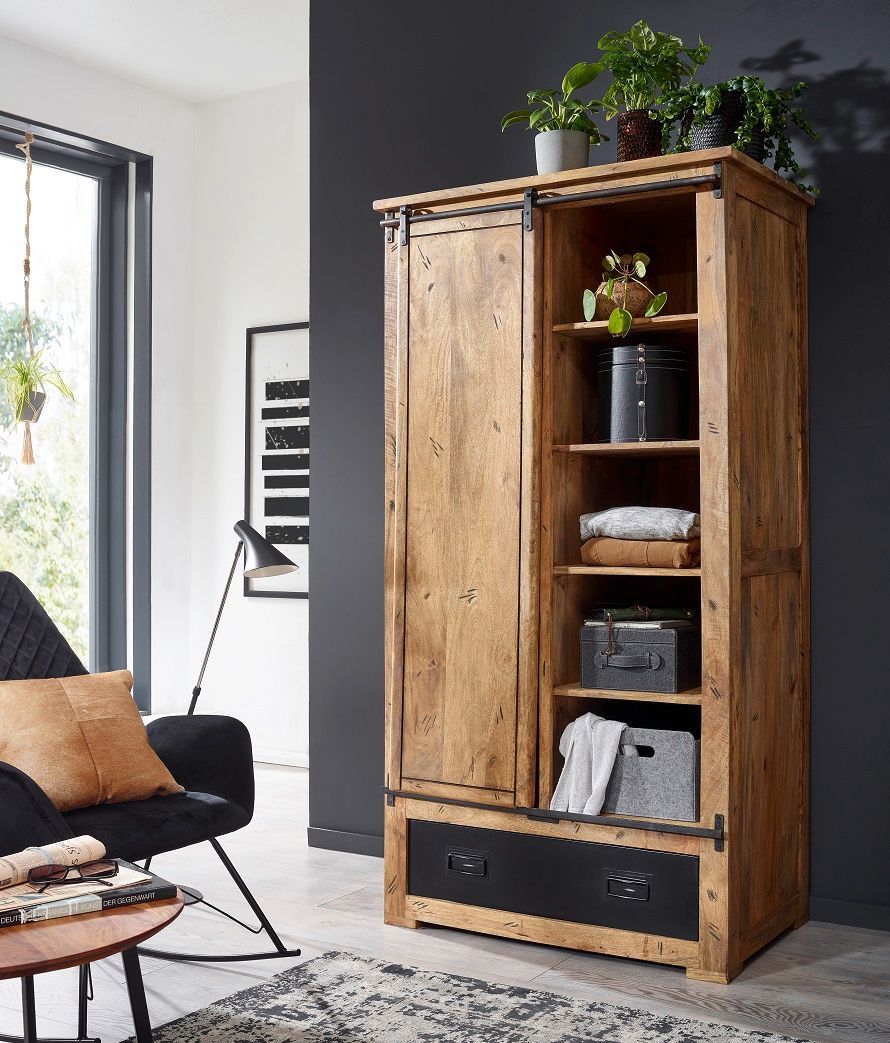 Garderobenschrank 100x190cm 'Railroad' Mango & Eisen