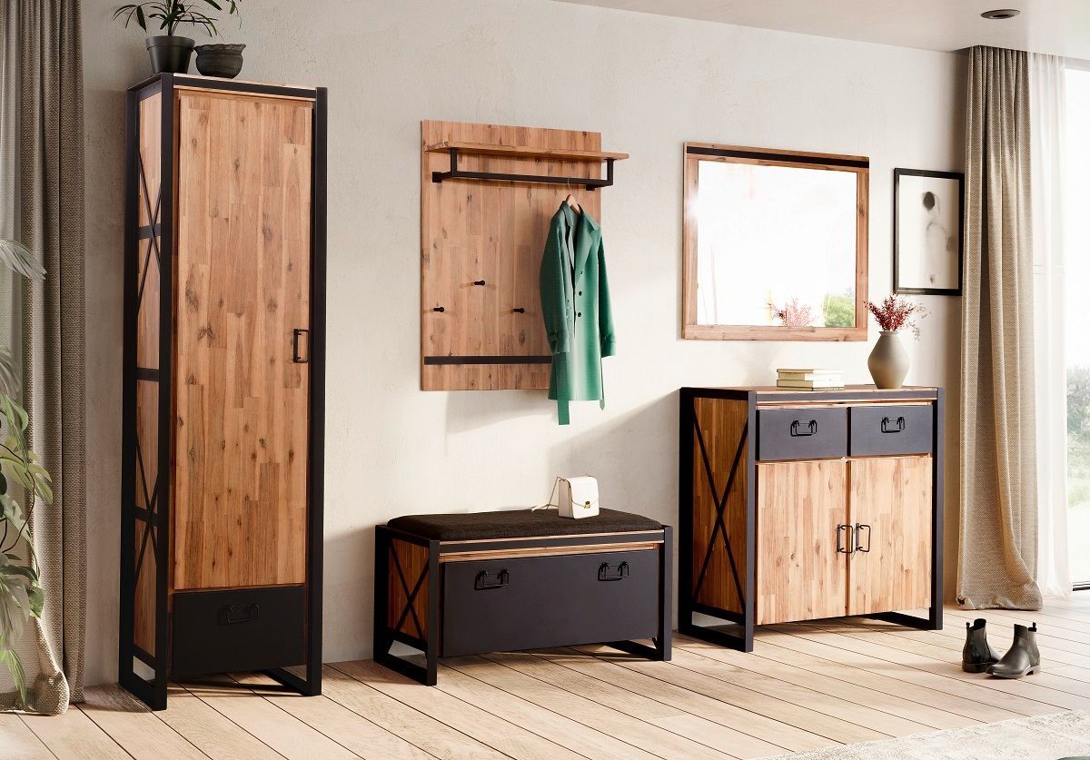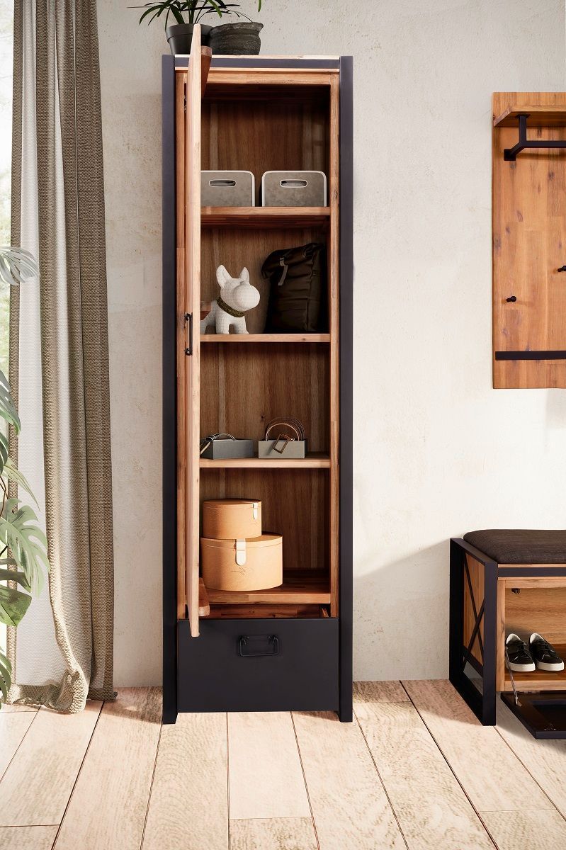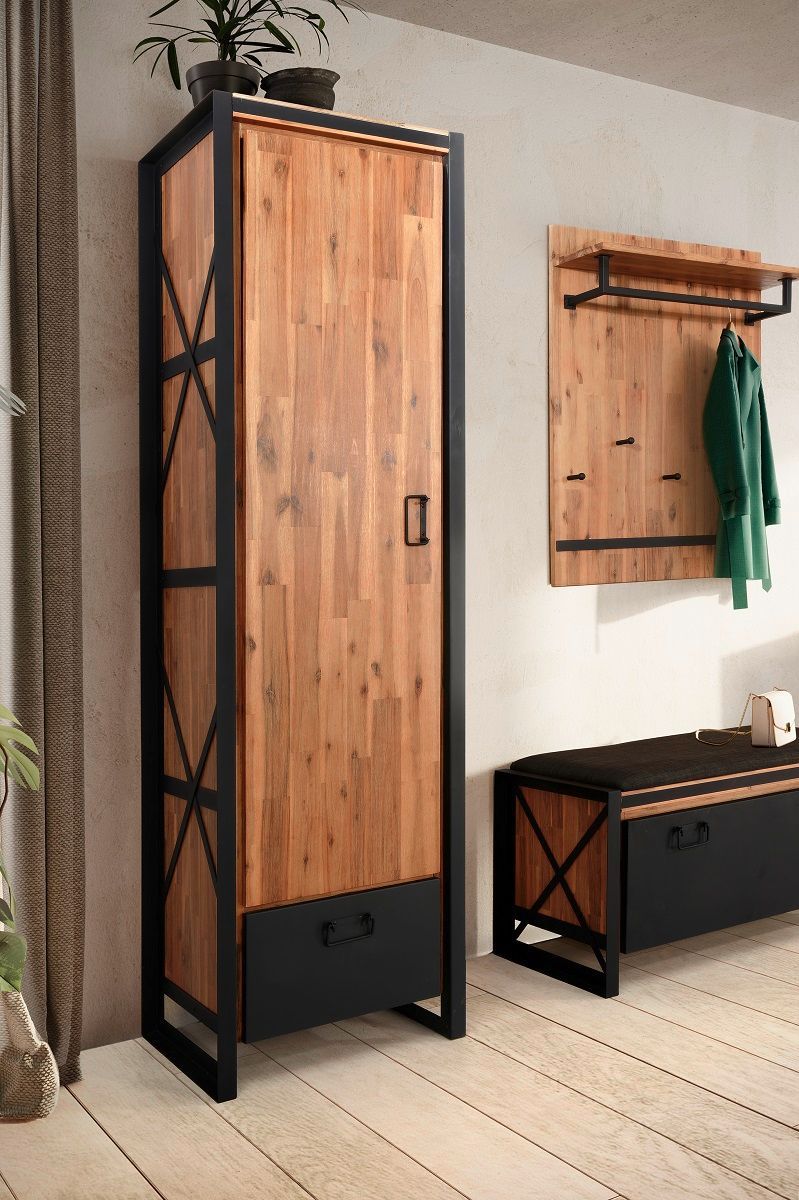 Garderobenschrank 57x200cm 'Montreux' Akazie & Metall schwarz