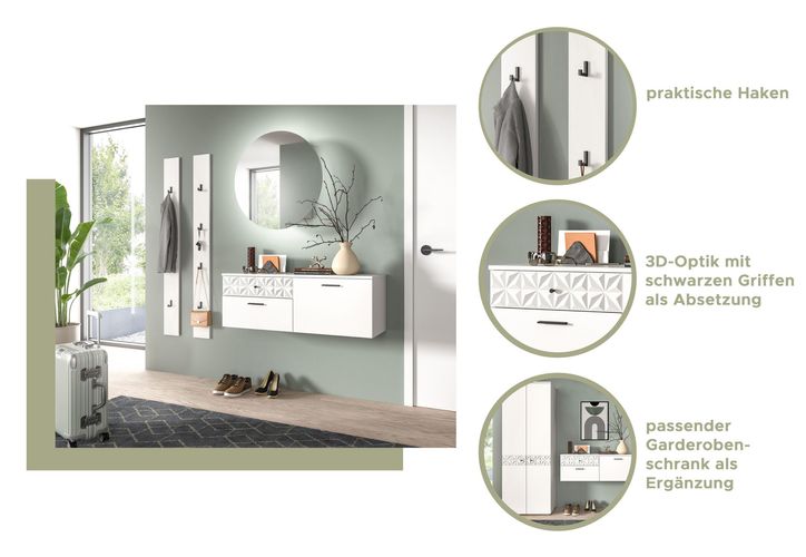 Garderobenschrank (B/H/T 70,2/192/34,8 cm) in weiß Nb und Hochglanz absetzungen