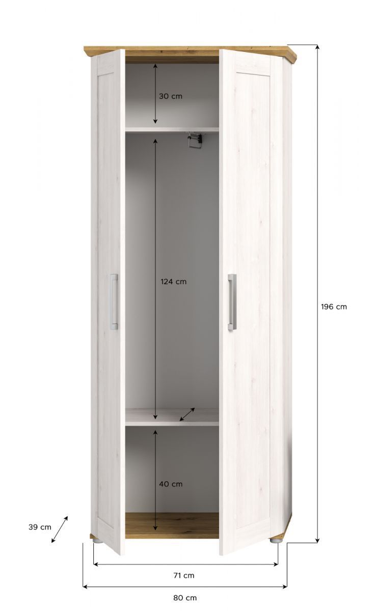 Garderobenschrank Flurschrank weiß Lärche Eiche Landhaus Diele Garderobe Mirano
