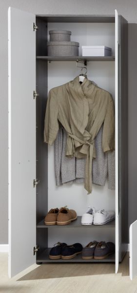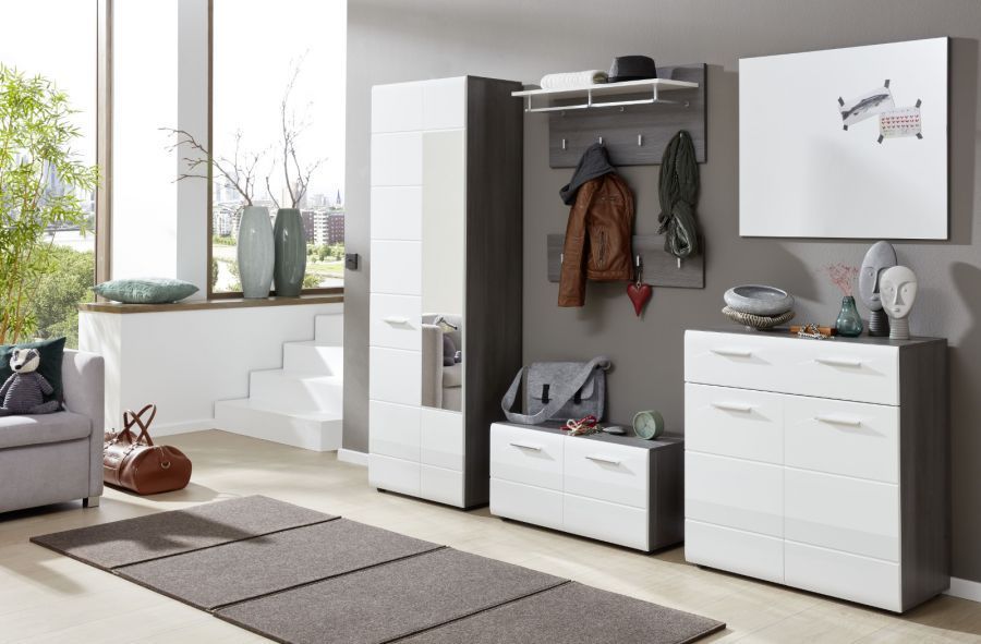 trendteam Garderobenschrank Garderobe Hochglanz weiß und grau Schrank Flur Diele Line