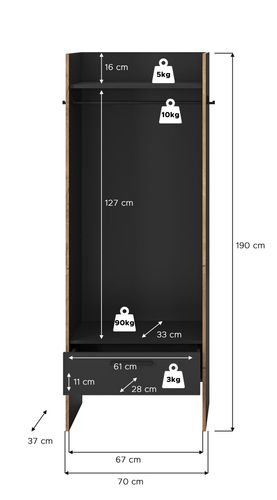 Garderobenschrank in Basalt Melamin und Basalt Melamin