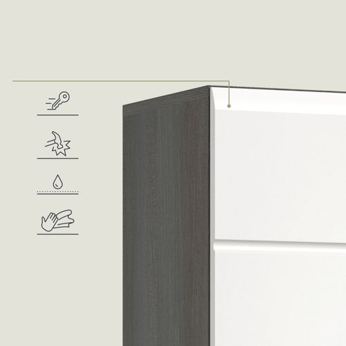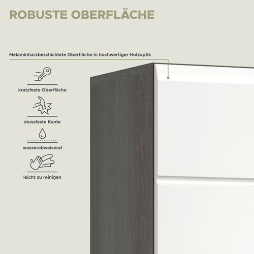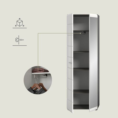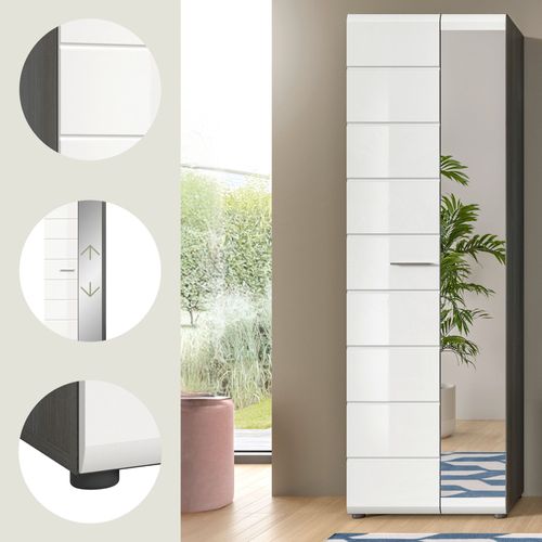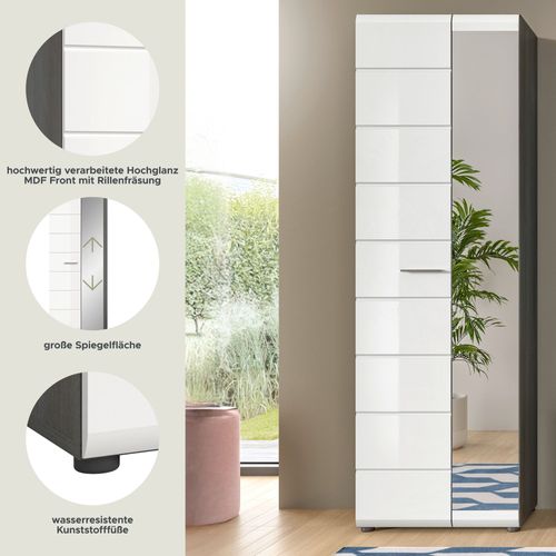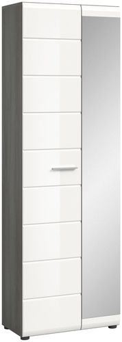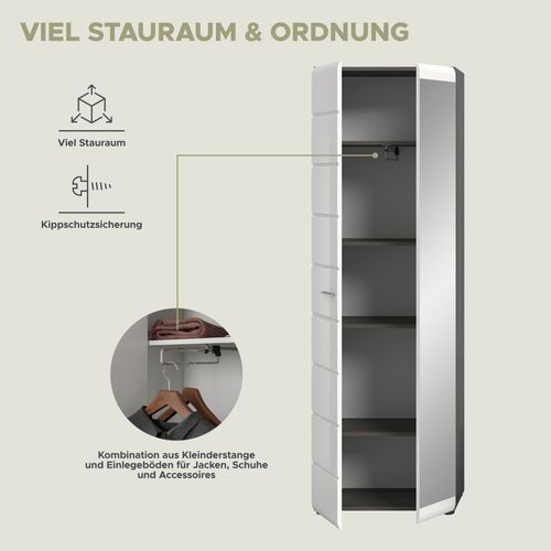 Garderobenschrank in Rauchsilber Nachbildung und weiß Hochglanz tiefzieh