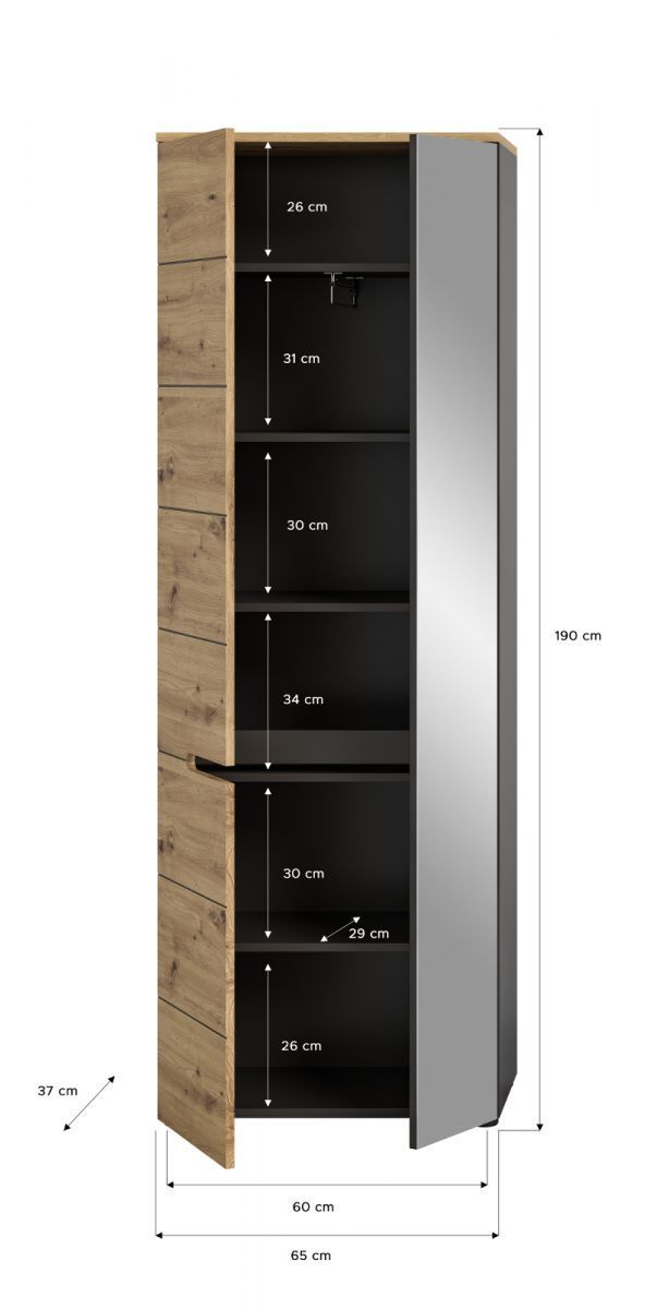 Garderobenschrank Schuhschrank Eiche grau Flur Schrank Cooper mit Soft-Close 65x190cm