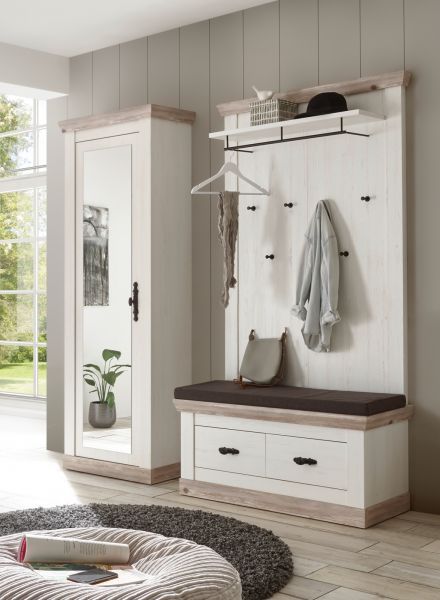 Garderobenschrank Schuhschrank Garderobe weiß Pinie Landhaus Spiegeltür Rovola