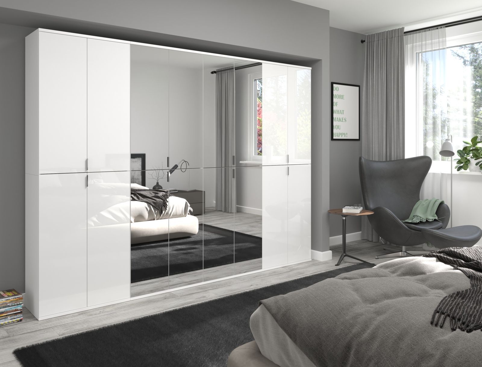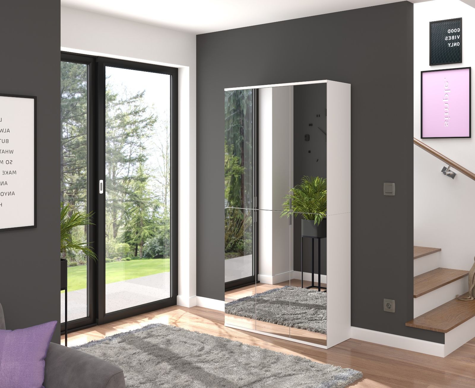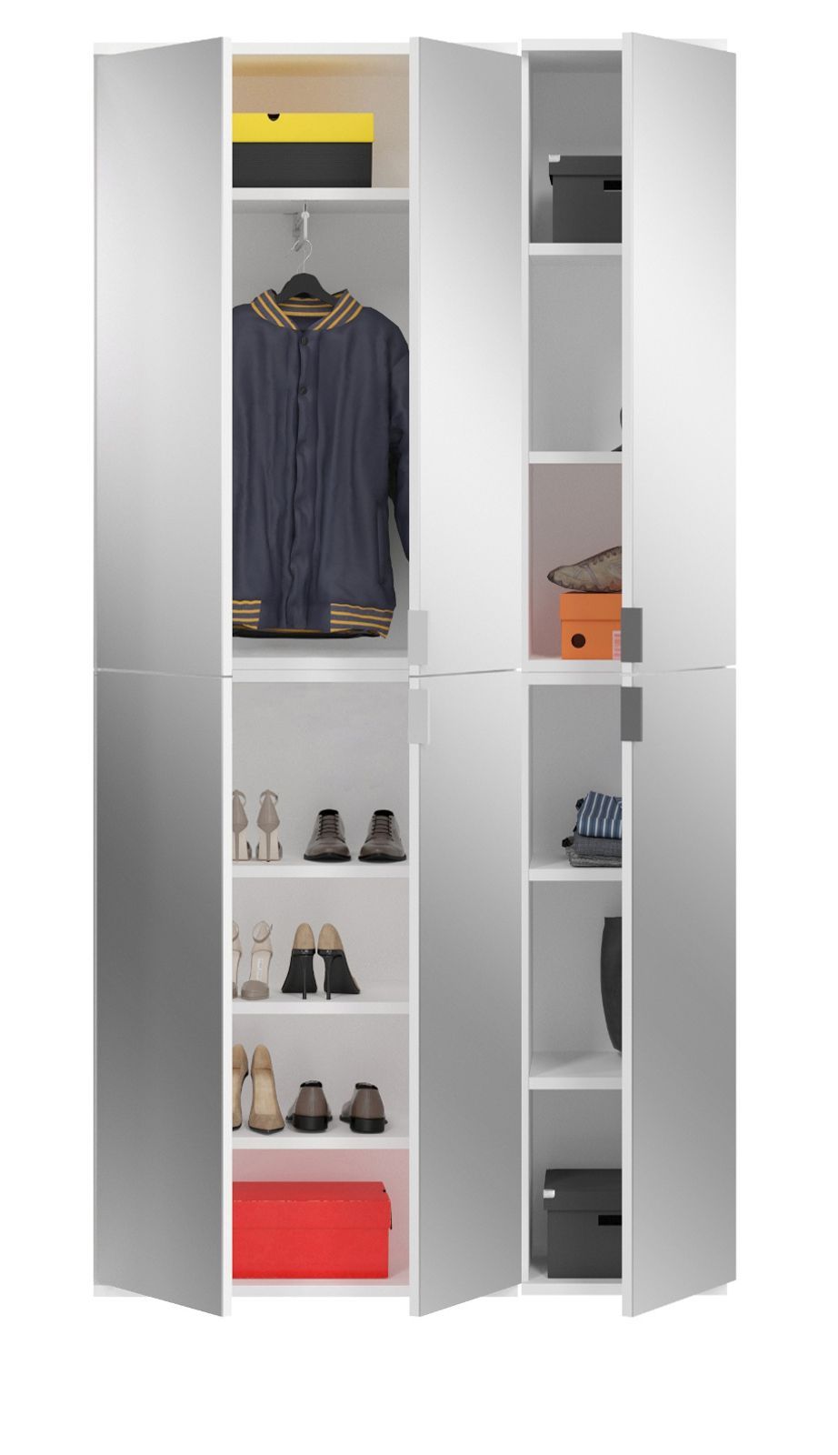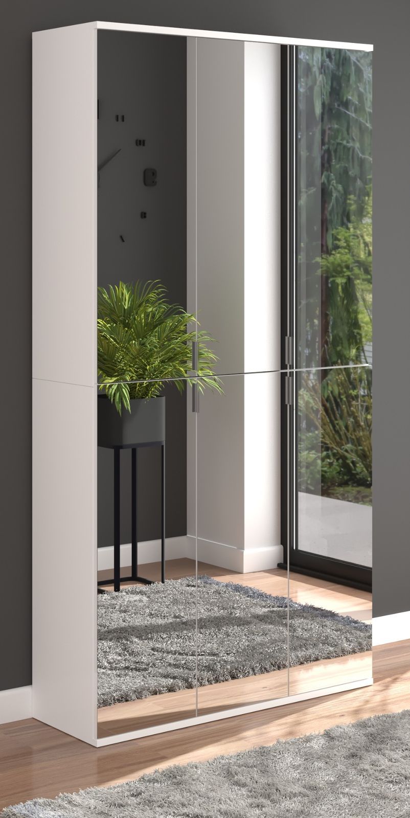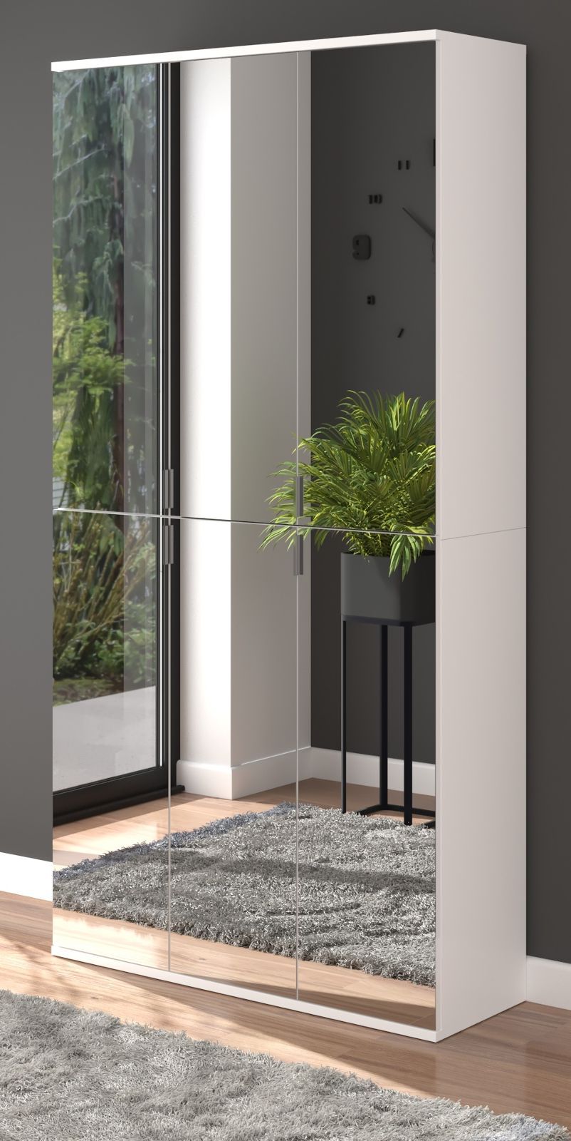 Garderobenschrank Schuhschrank weiß mit Spiegel 6 Türen Mehrzweckschrank SystemX