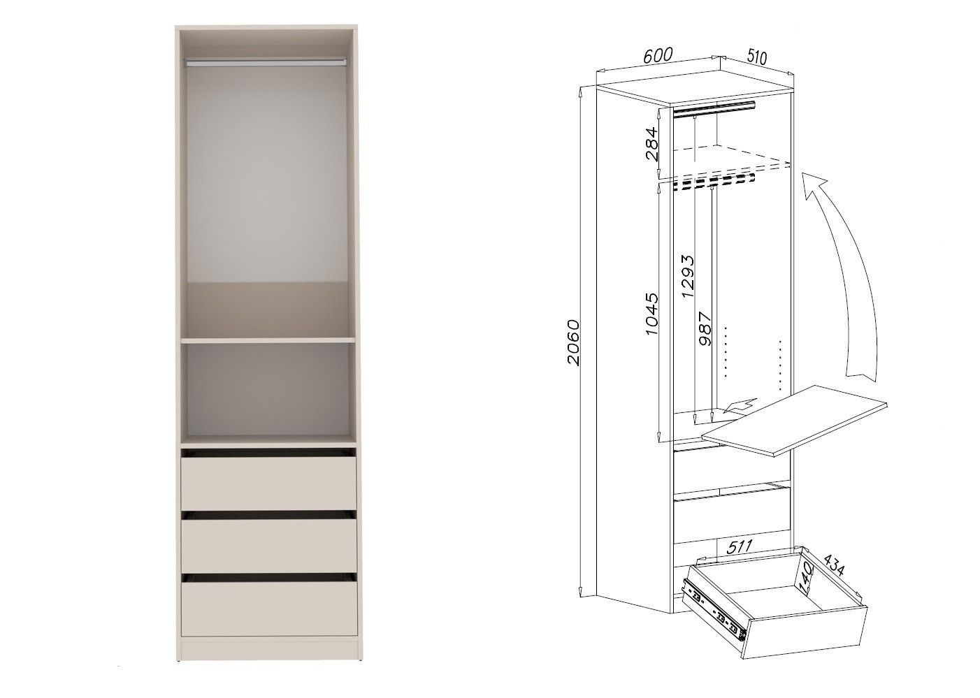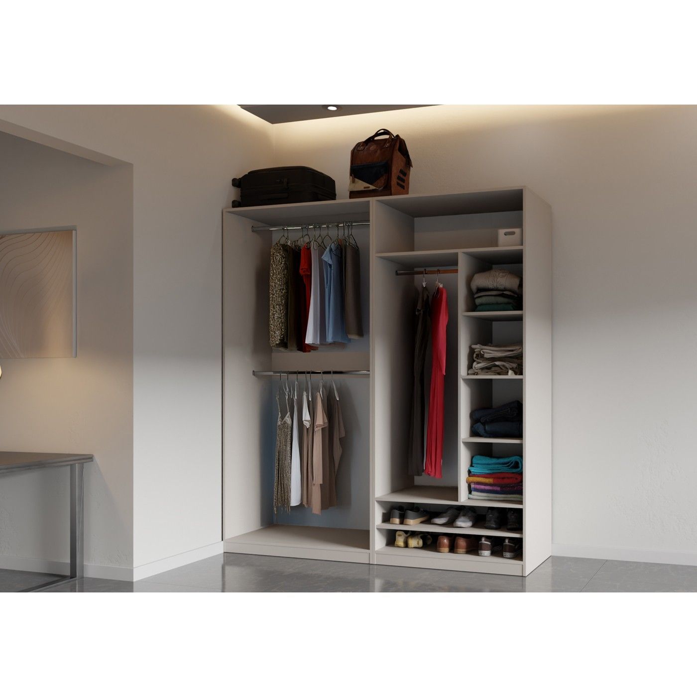 Garderobenschrank TRES 04C offener Kleiderschrank mit Kleiderstange und Fächer