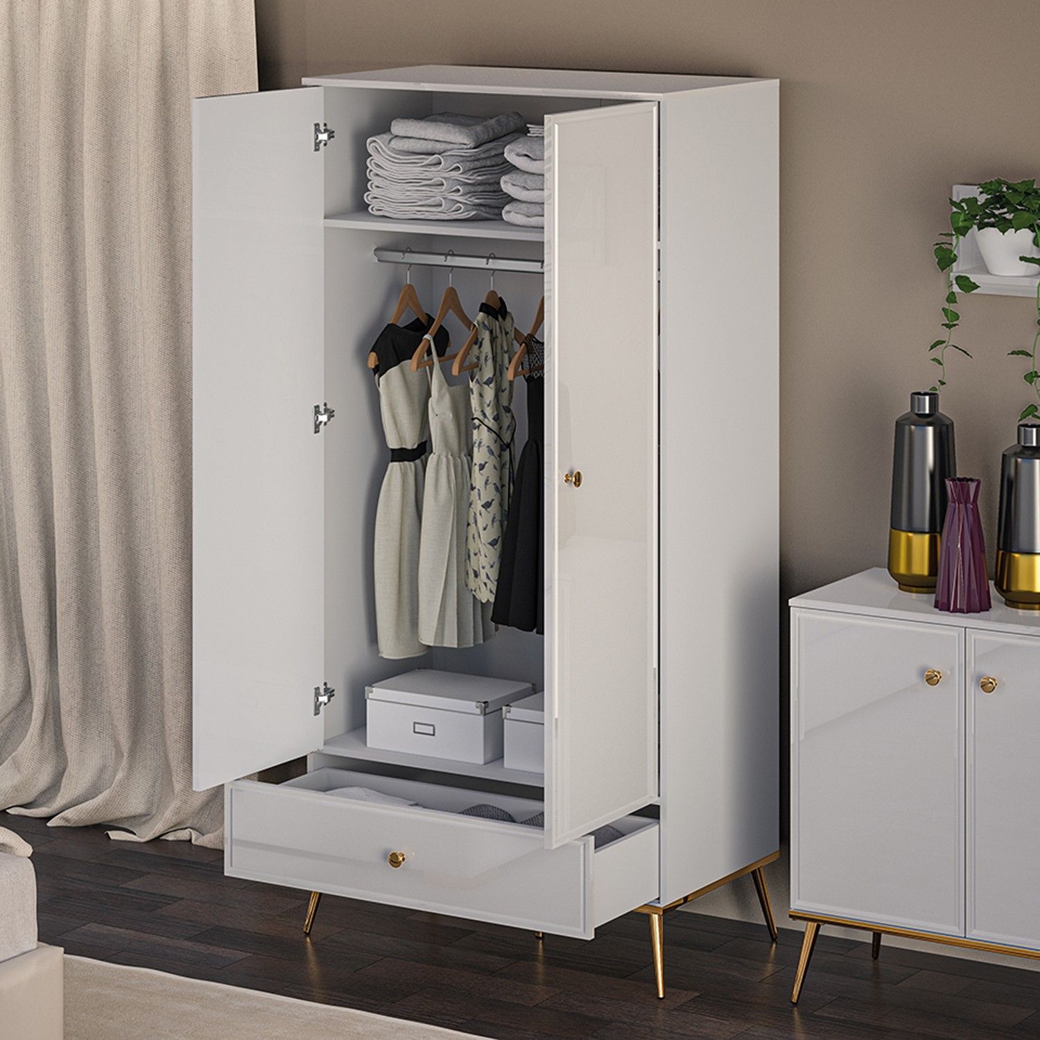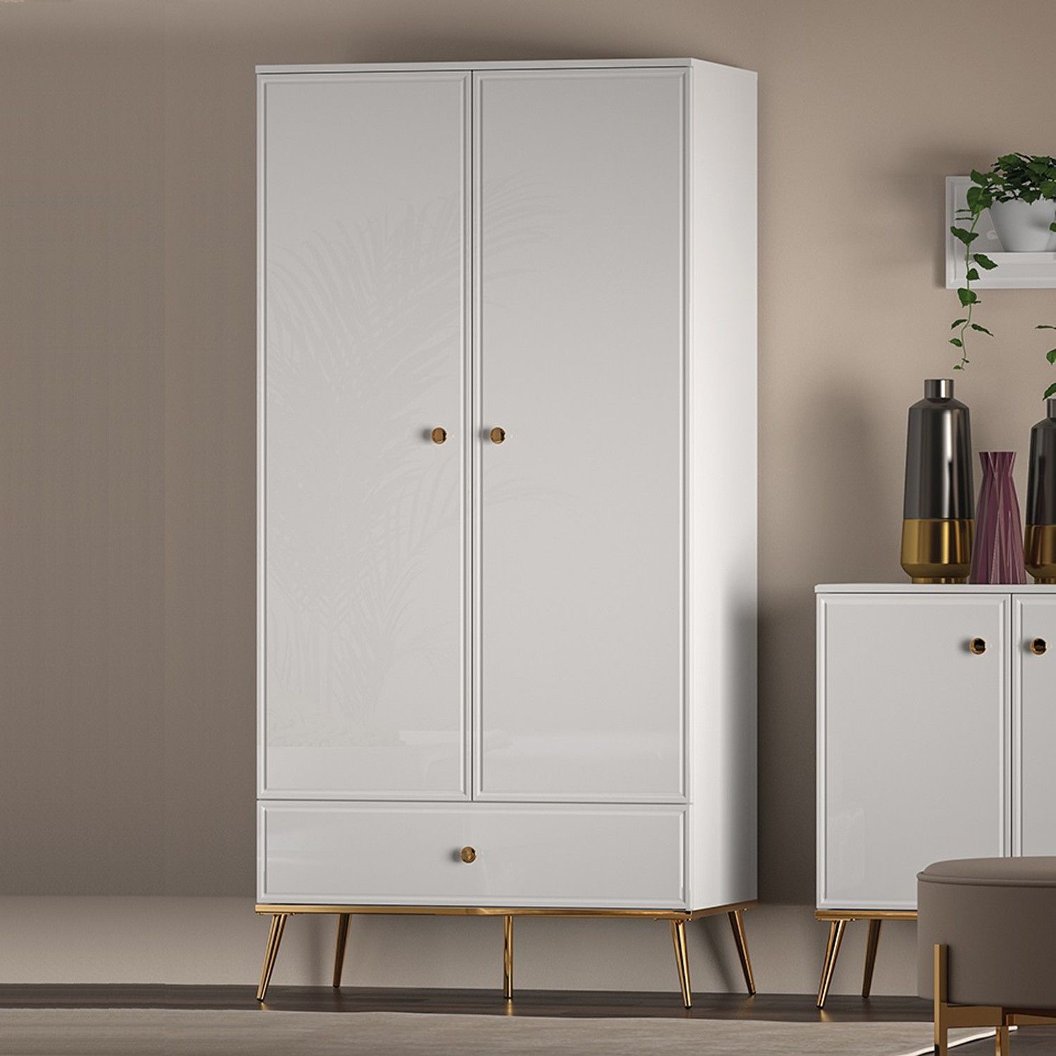 Garderobenschrank weiß glänzend glamour style Goldin 01 Klaiderschrank