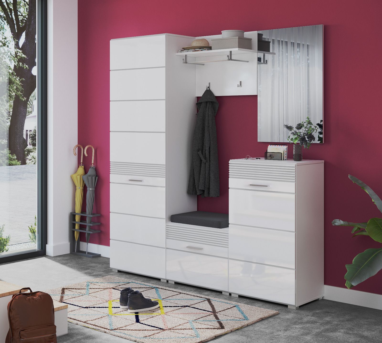 Garderobenschrank weiß Hochglanz Garderobe Kleiderschrank und Schuhschrank Leon
