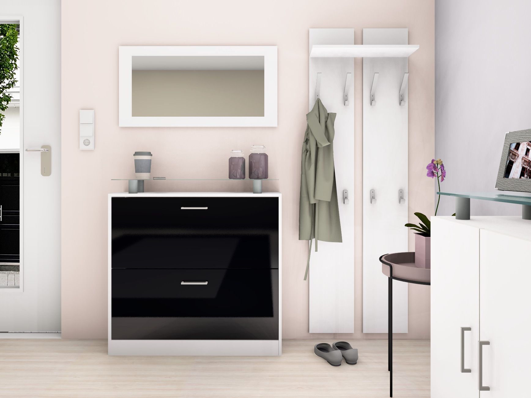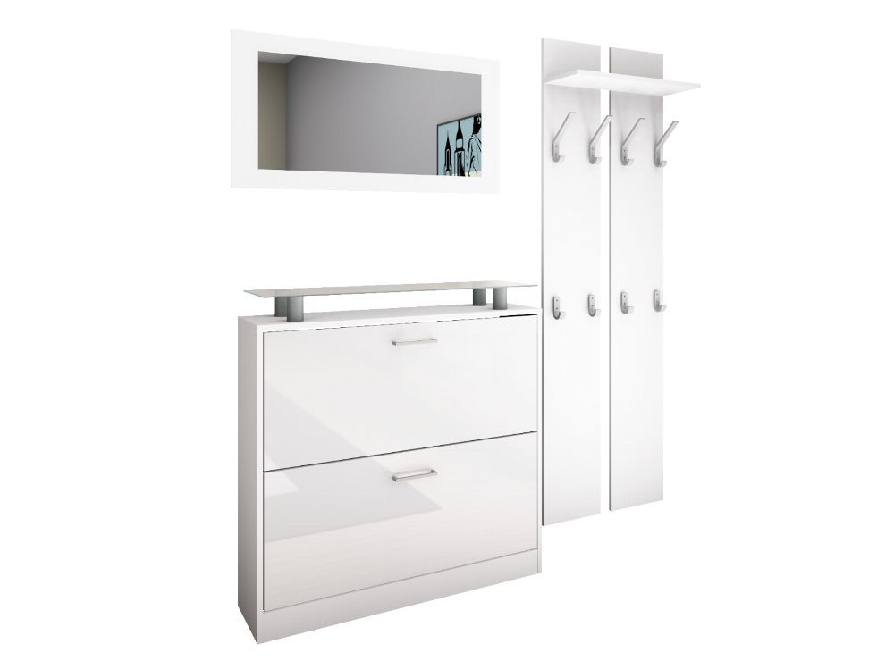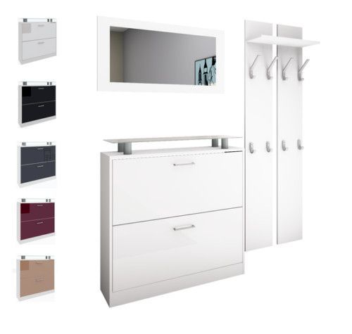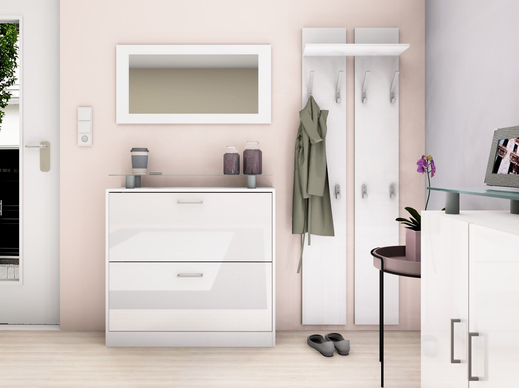 Garderobenset Garderobe Paneel Schuhschrank Spiegel Flur Hochglanz Weiß Finn