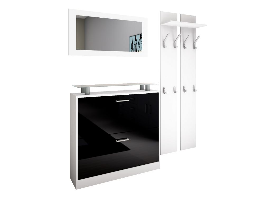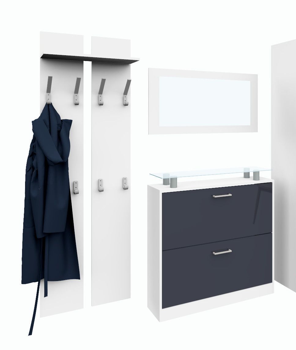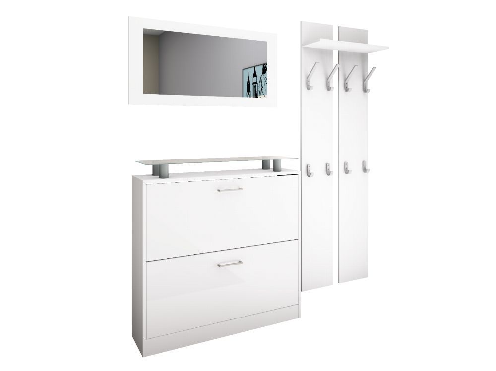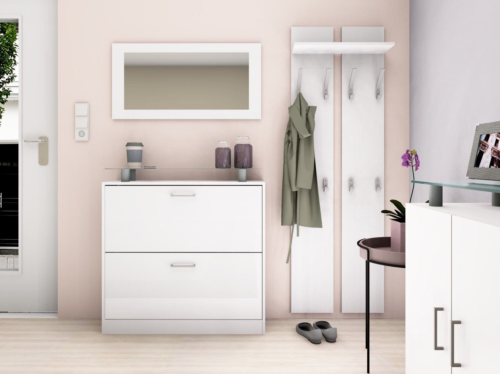 Garderobenset Garderobe Paneel Schuhschrank Spiegel Flur Hochglanz Weiß Finn