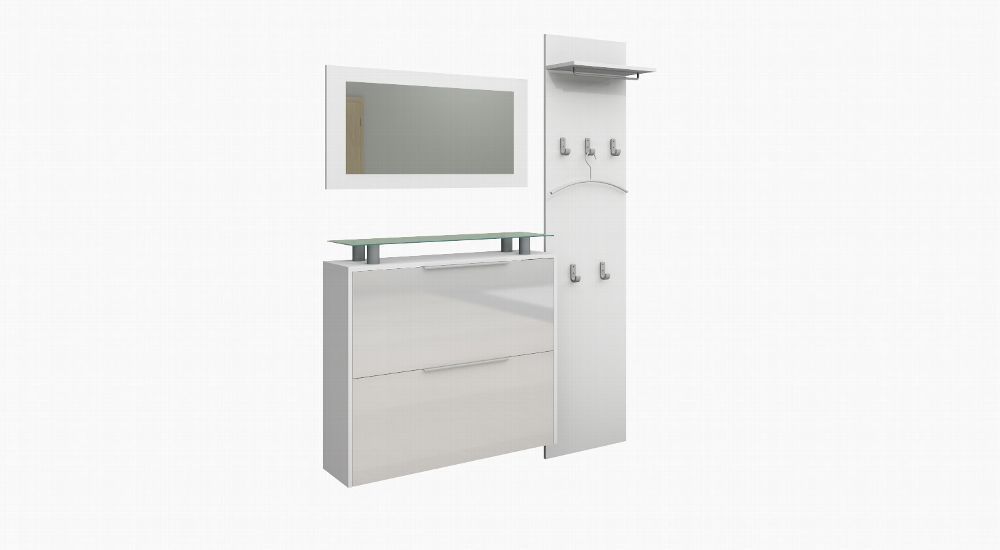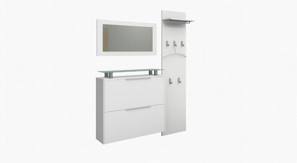 Garderobenset Garderobe Schuhschrank Schuhkipper Spiegel Schuhschrank Weiß Rena