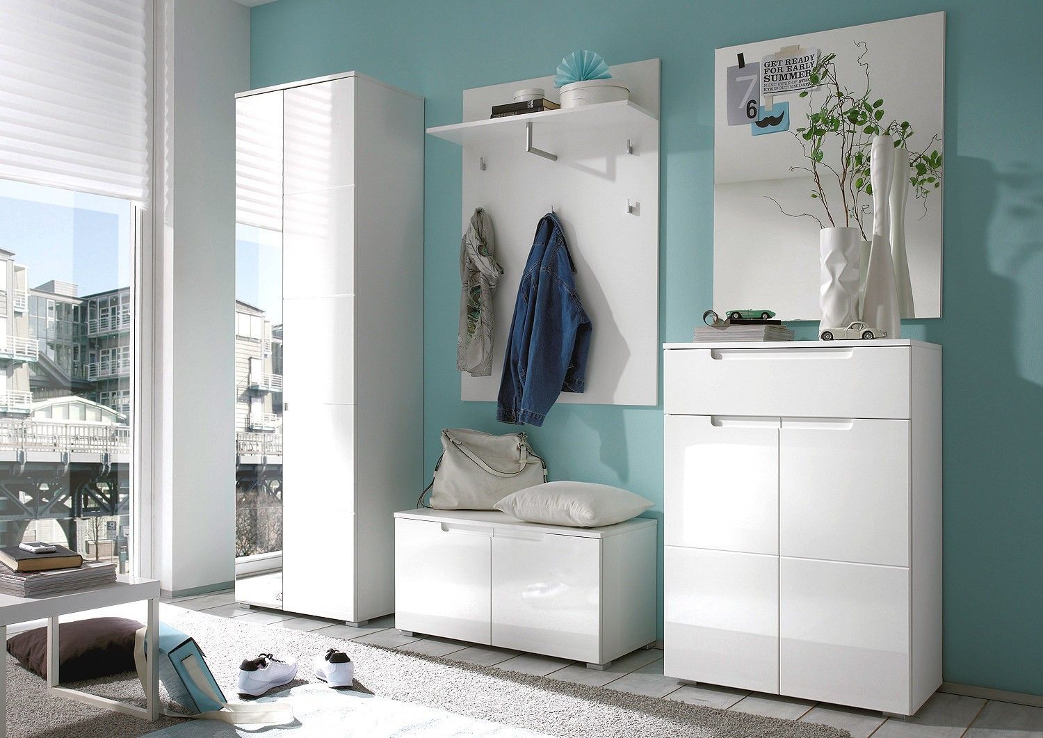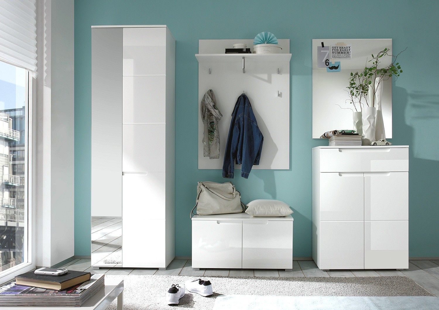 Garderobenset Garderobe SLICE 5-tlg. in weiß / weiß Hochglanz