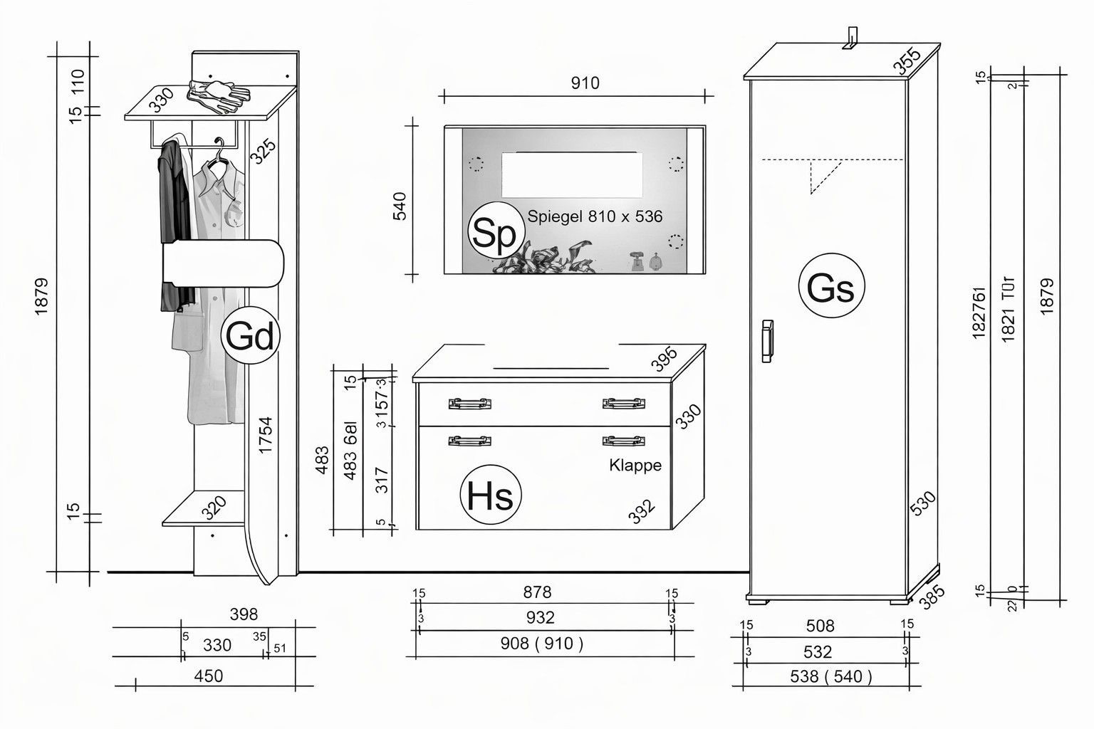 Garderobenset Kernbuche dekor Flurgarderobe Dielenset #730