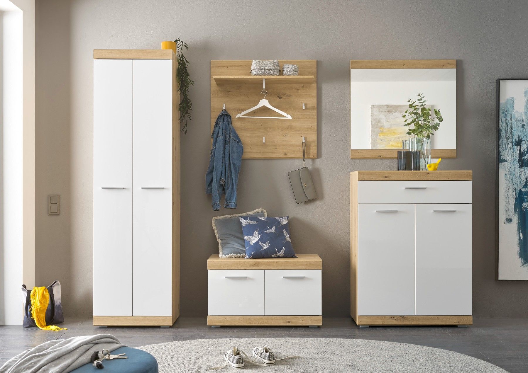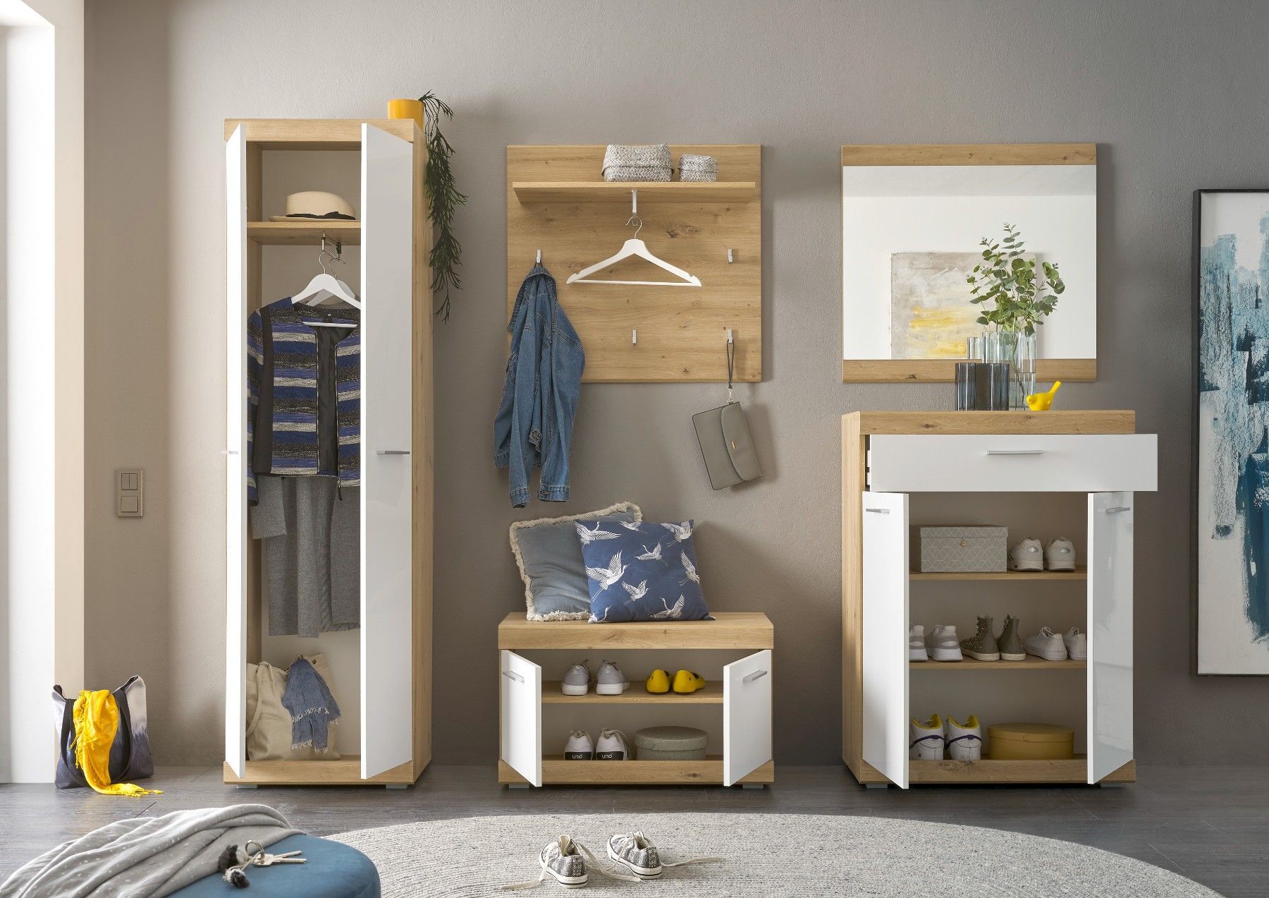 Garderobenset Nova 5-tlg. in Artisan / Fronten in weiß Hochglanz