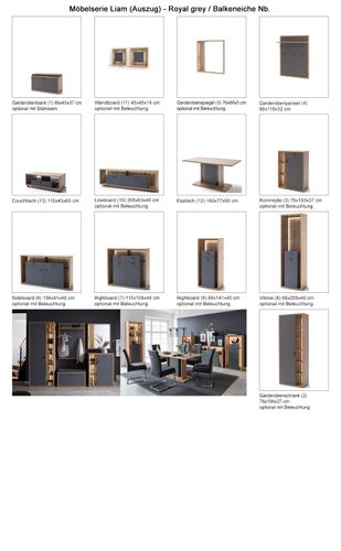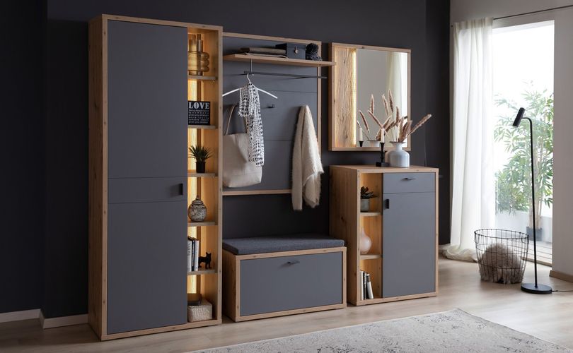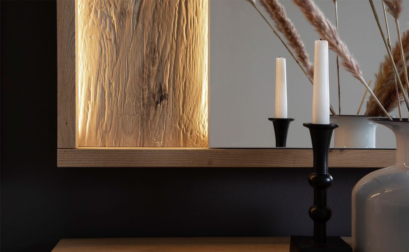 Garderobenspiegel Liam 5 Royal grey Balkeneiche Nb. 76x86x5 cm LED