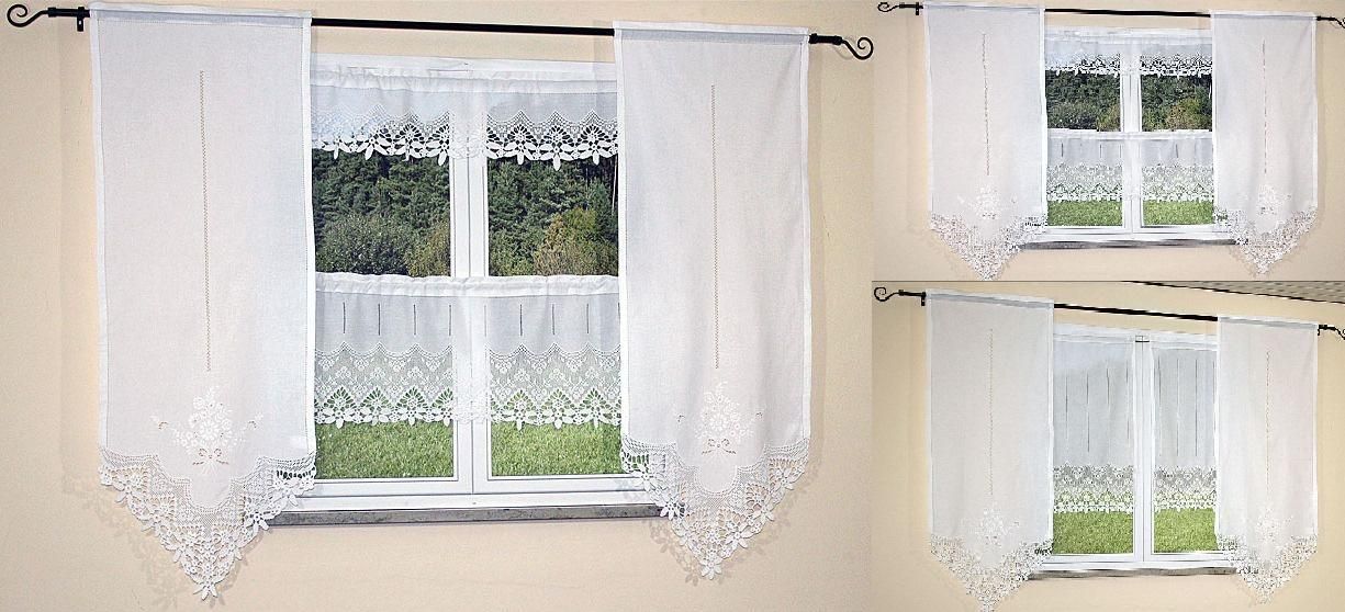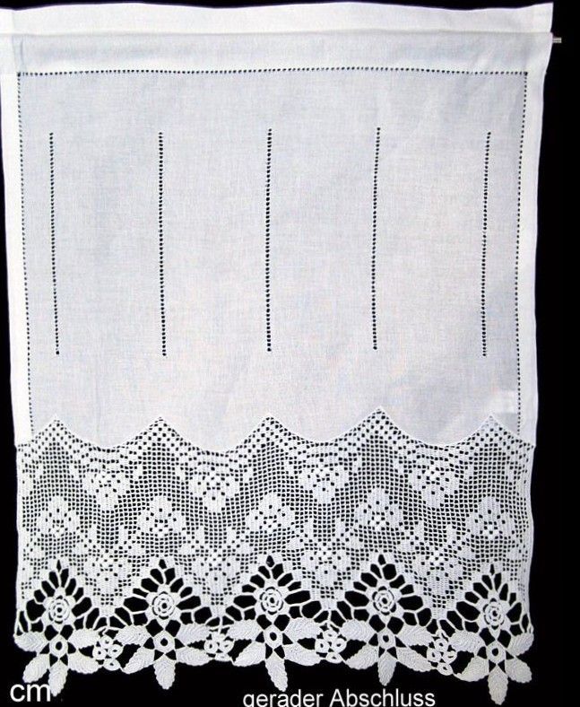 Gardine Scheibengardine Landhaus Spitzengardine Baumwolle Weiß Spitze Handarbeit