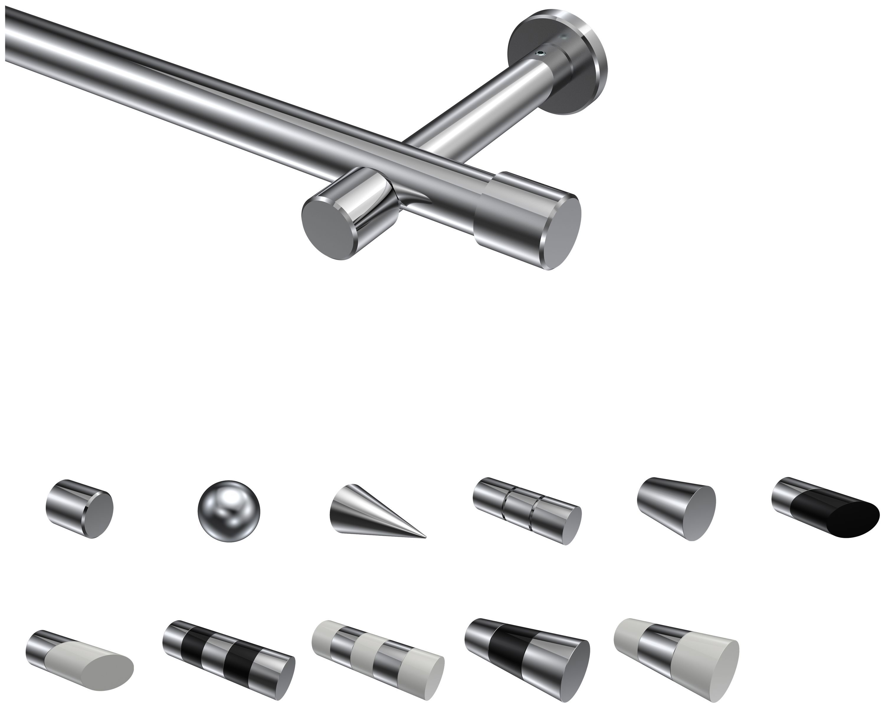 Gardinenstangen / Vorhangstangen Chrom 20 mm Ø ohne Ringe
