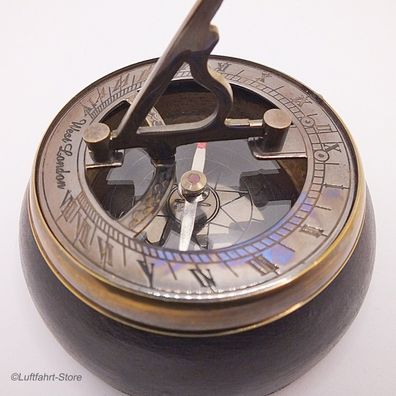 Tisch-Kompass mit Sonnenuhr und Holzsockel Vintage Art.-Nr. 13058