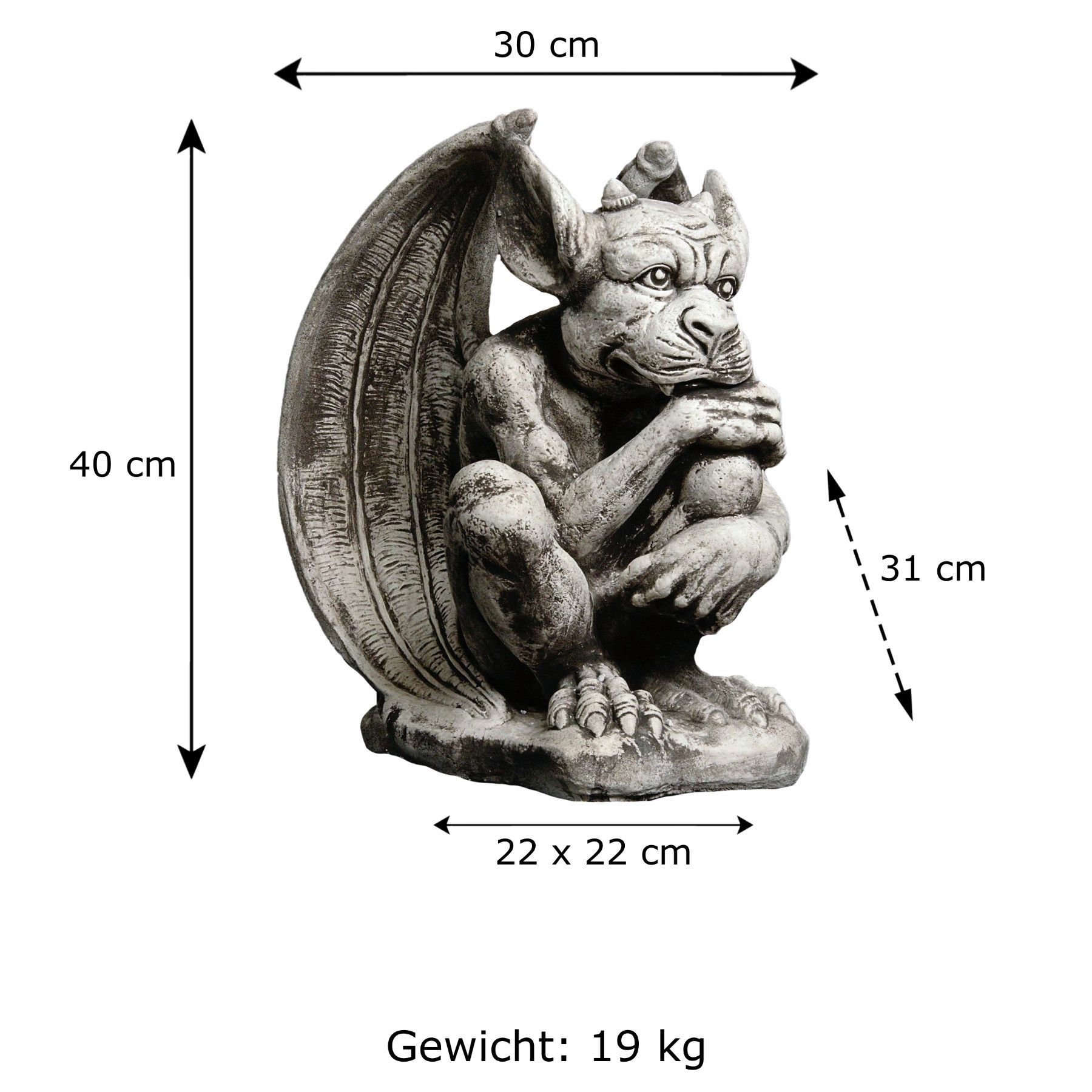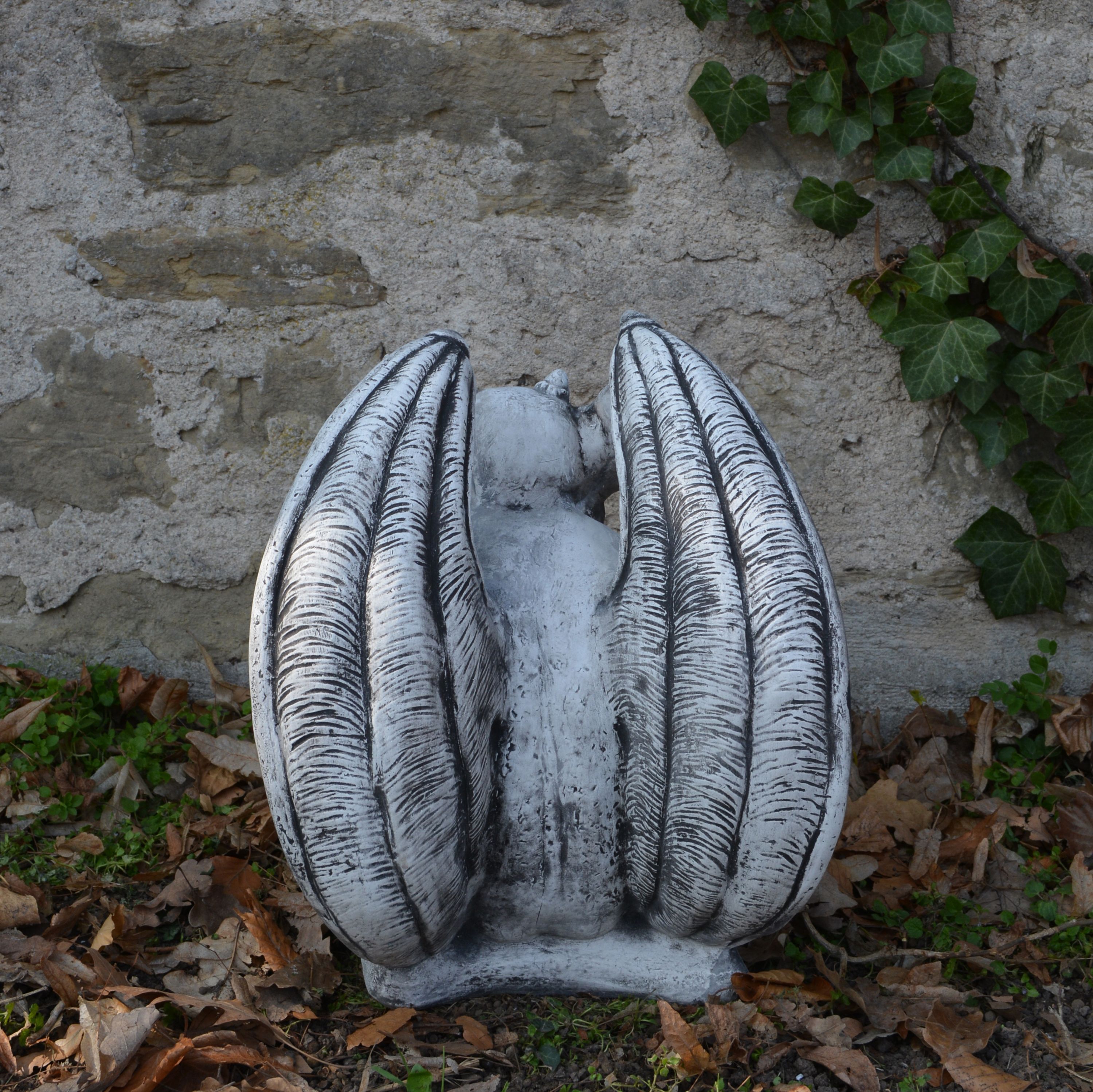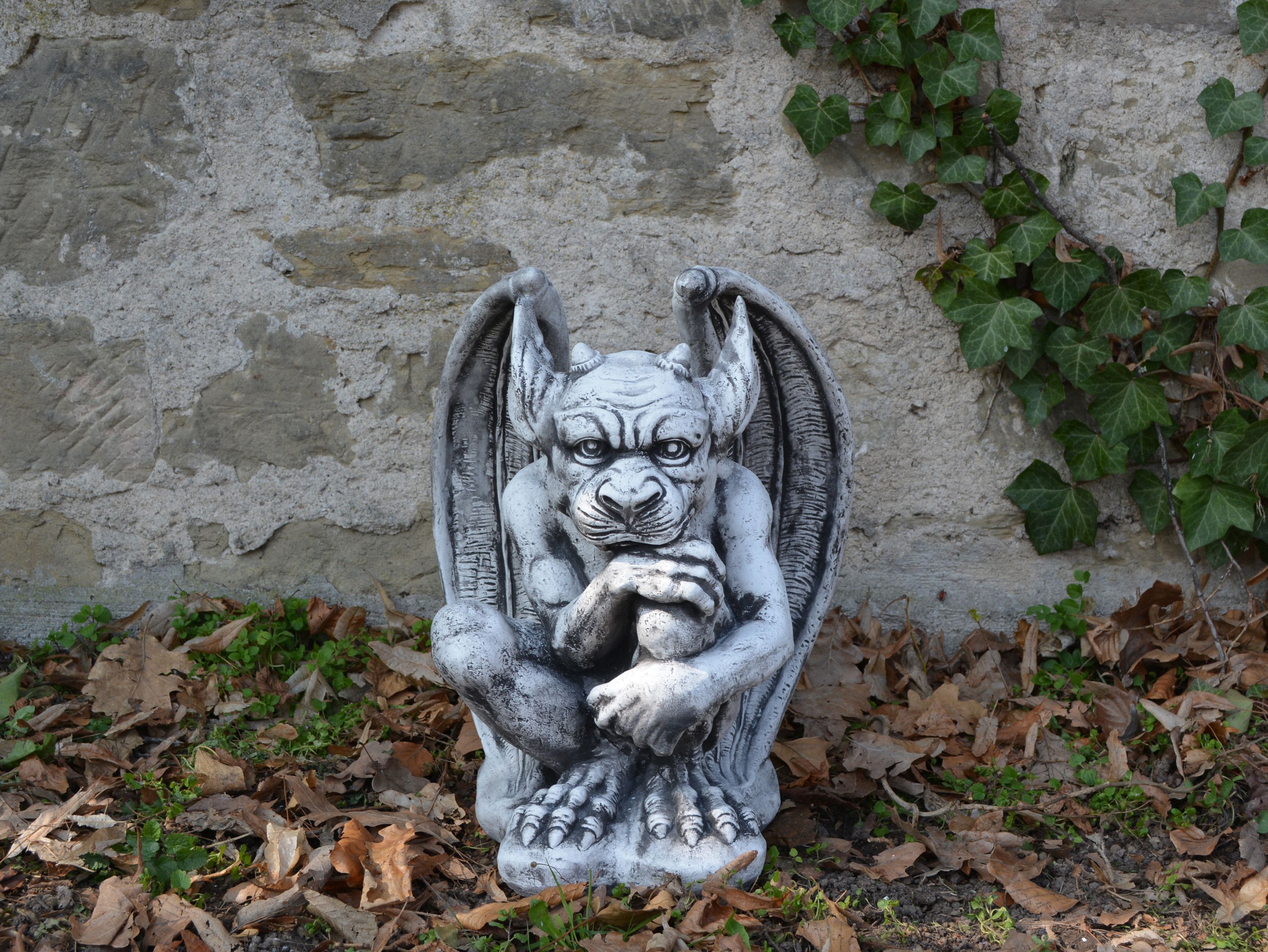 Gargoyle der Wächter, Steinfigur, H. 40 cm, 19 kg, Grau, frostsicher aus Steinguss