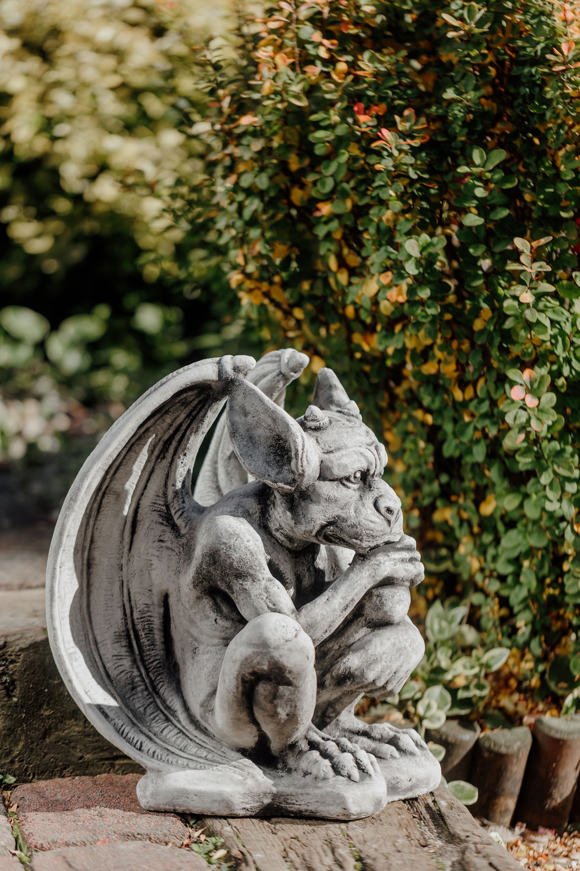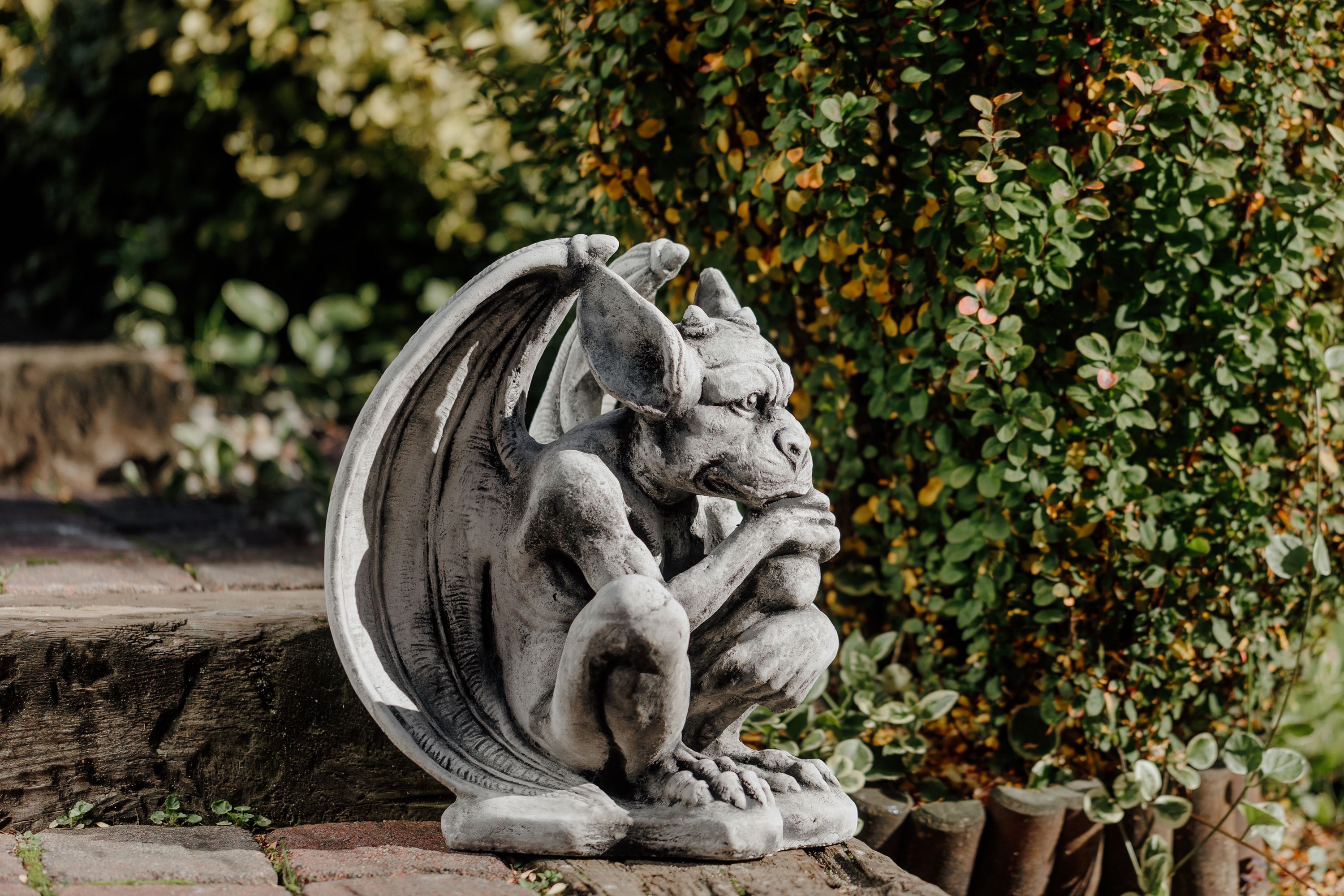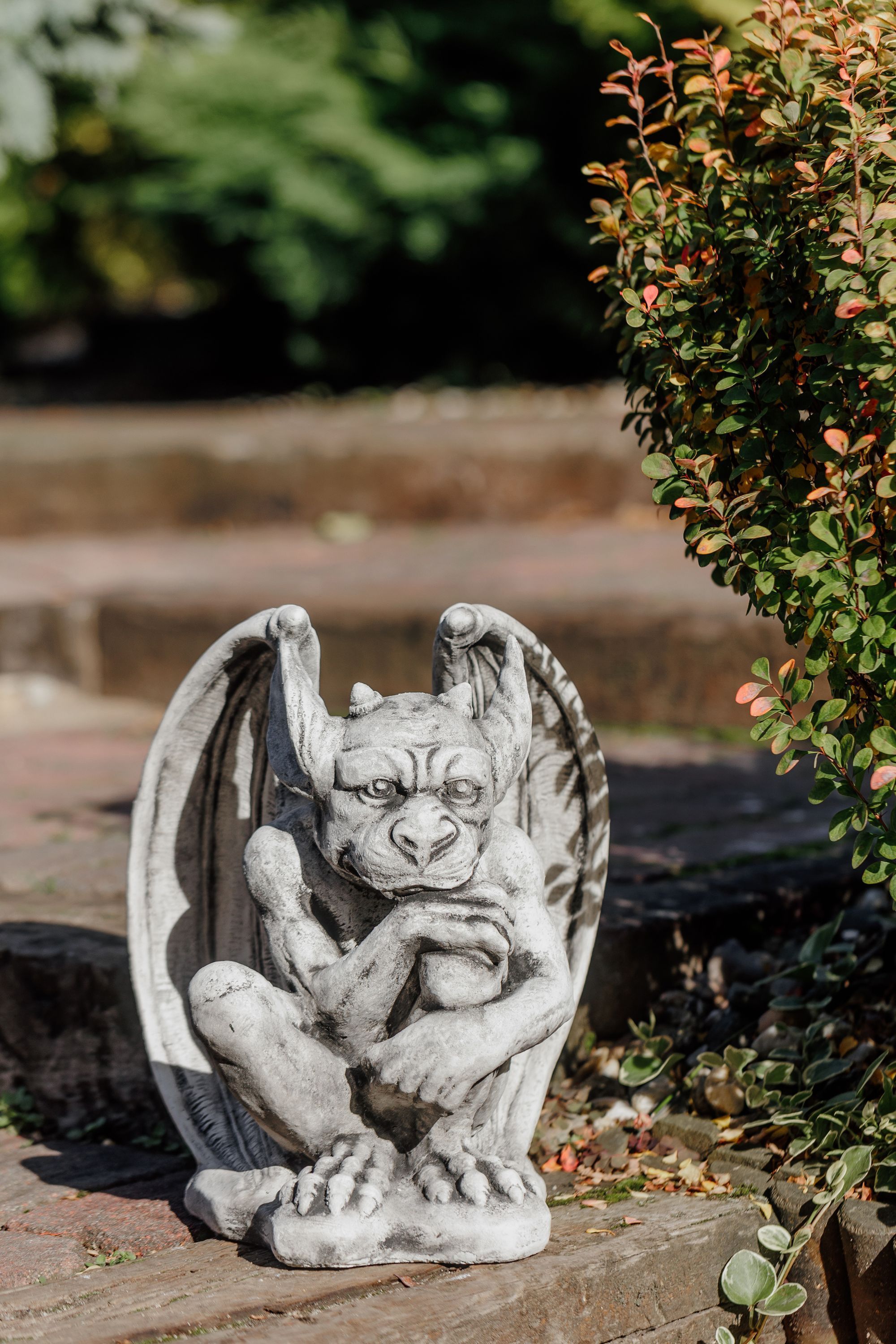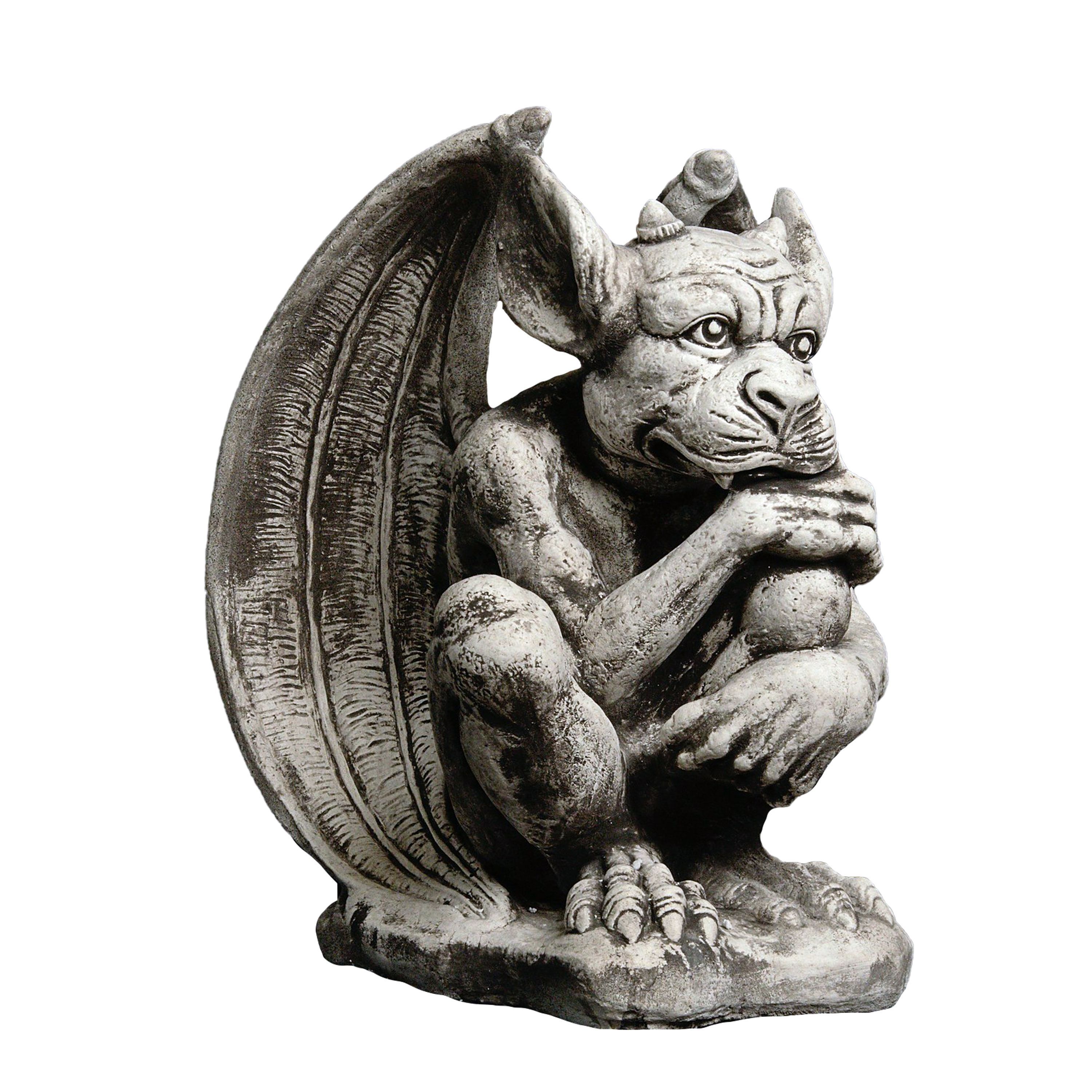 Gargoyle der Wächter, Steinfigur, H. 40 cm, 19 kg, Grau, frostsicher aus Steinguss
