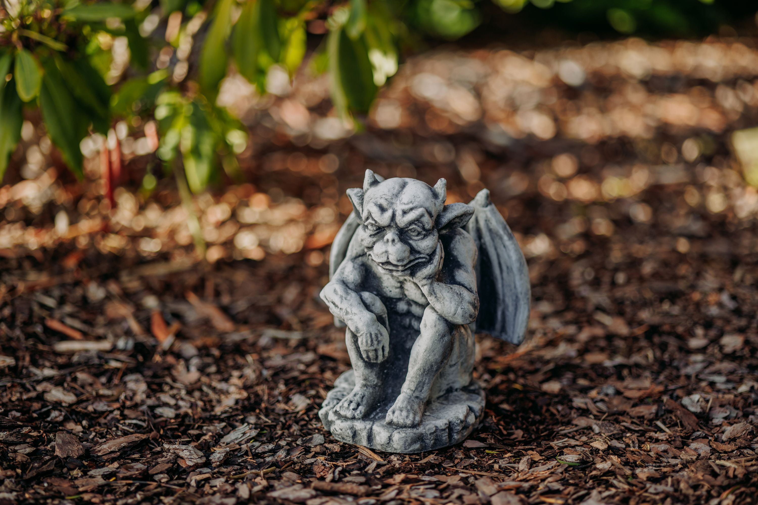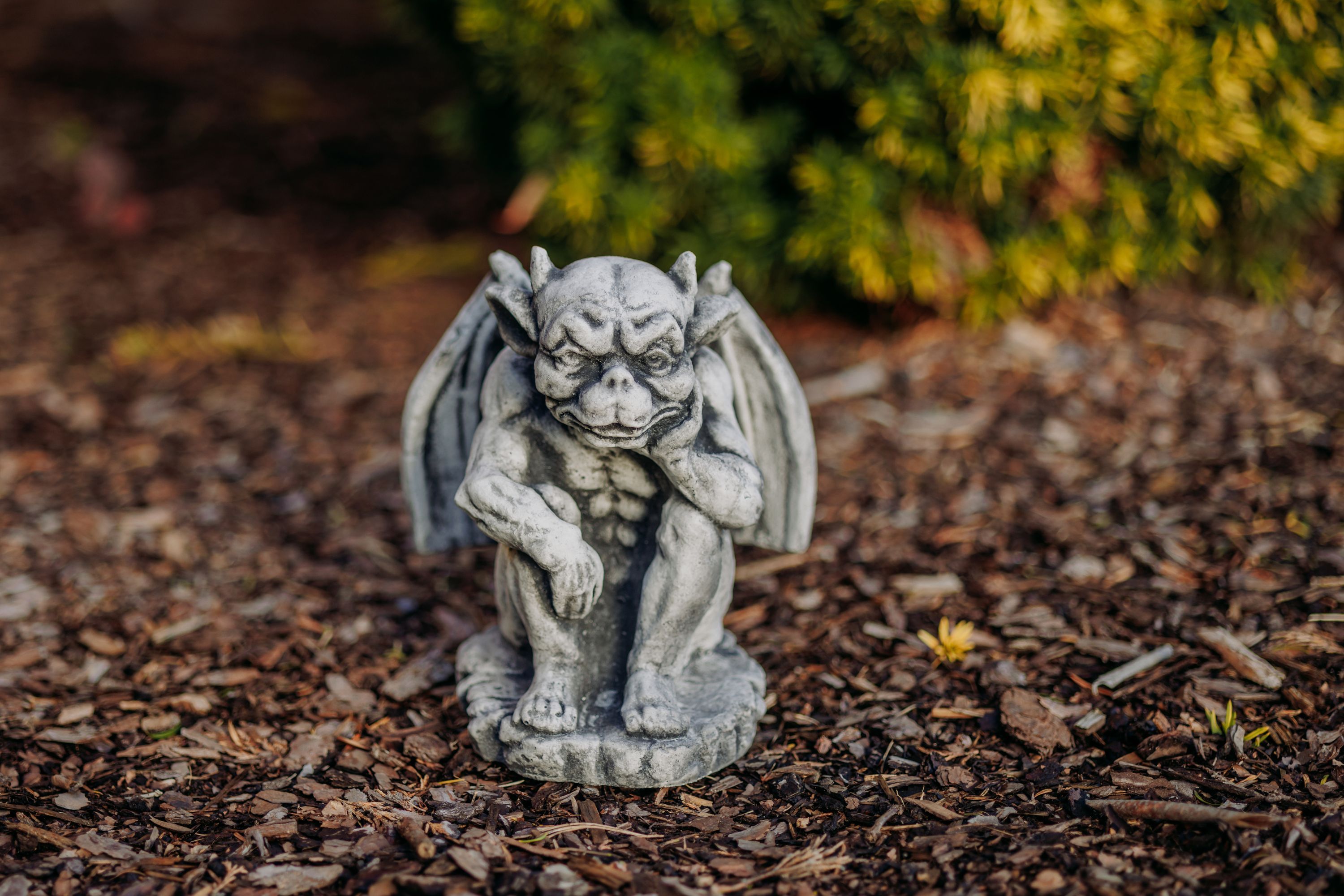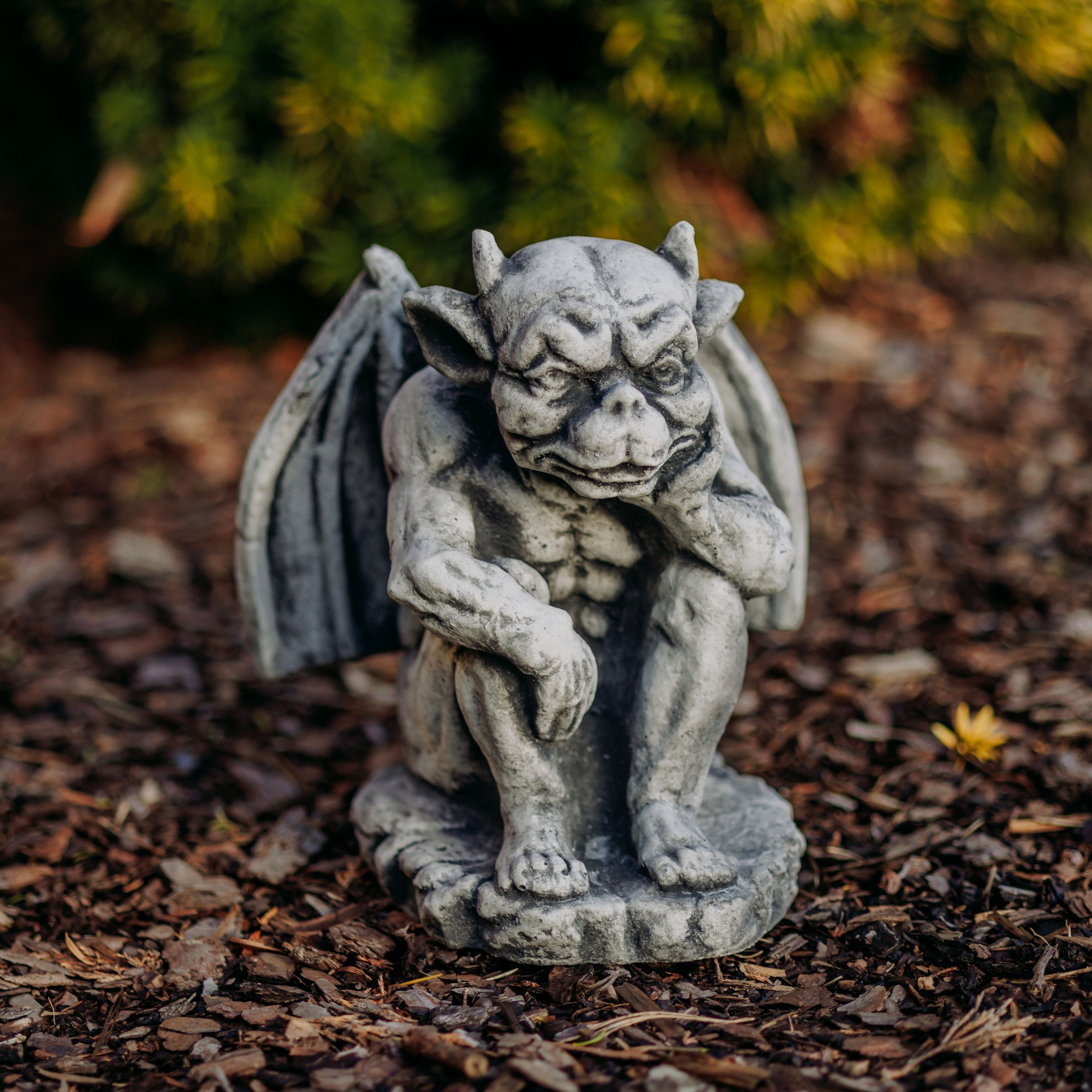 Gargoyle Torwächter Gartenfigur, 21 cm Höhe, Steinguss, Grau, frostsicher