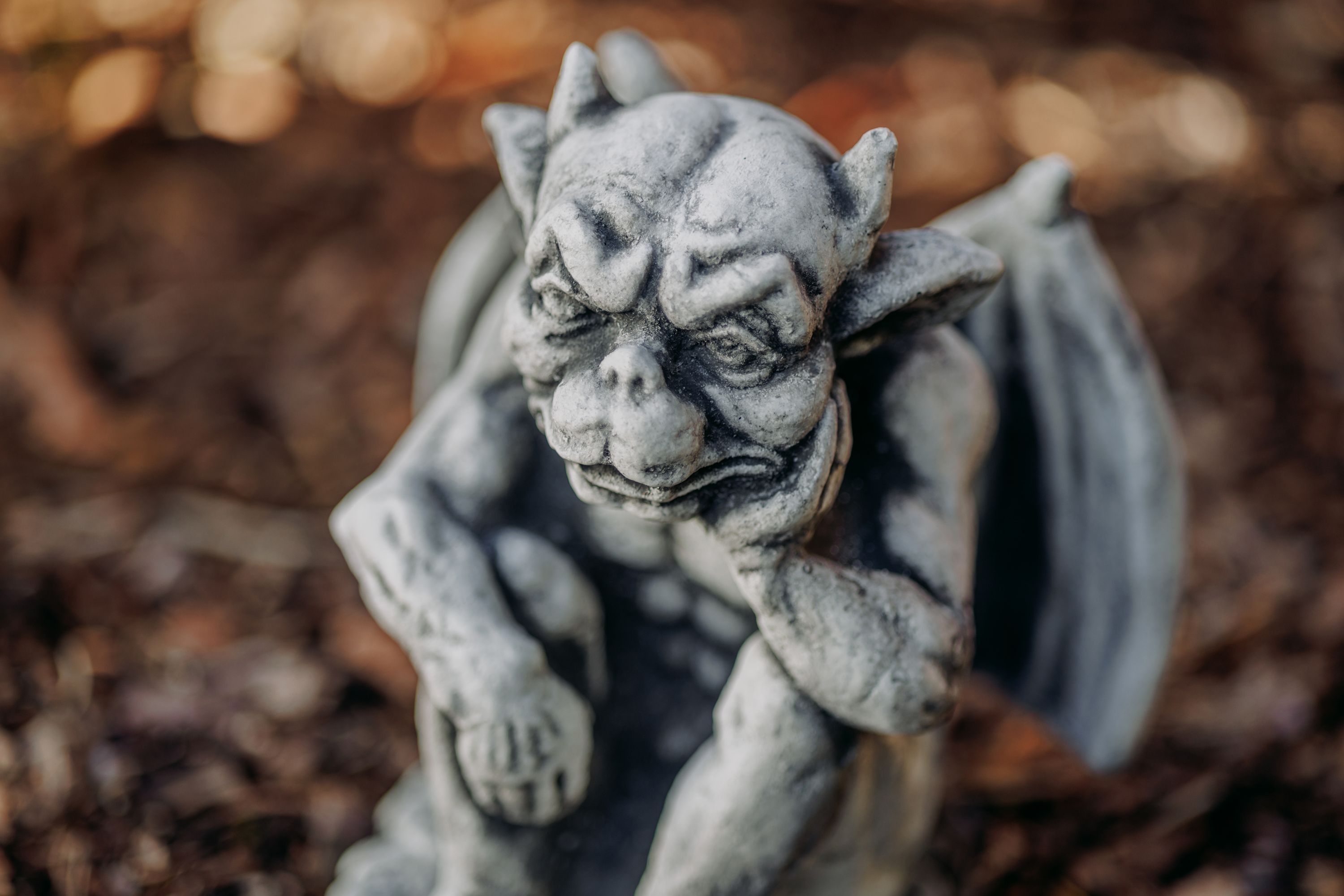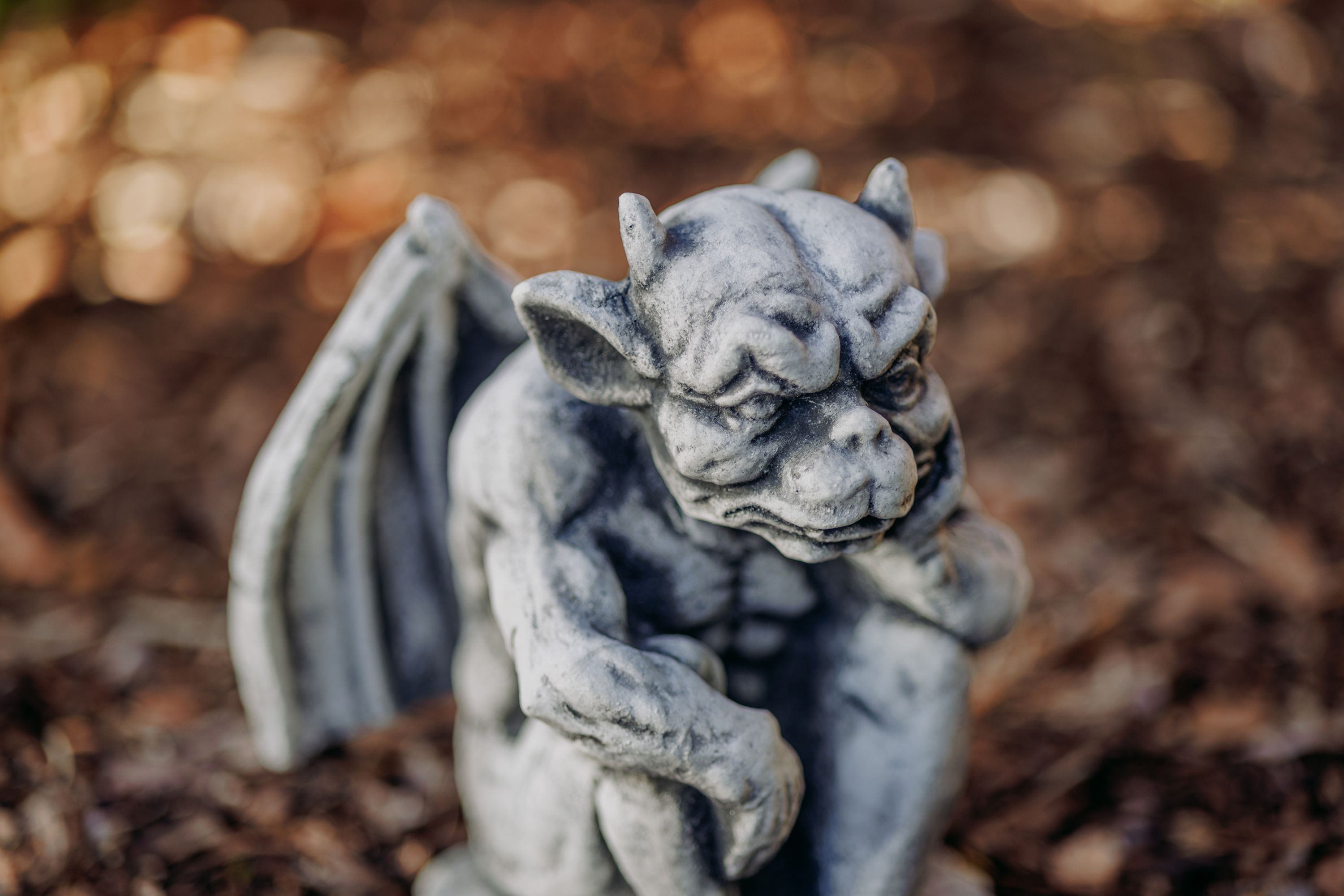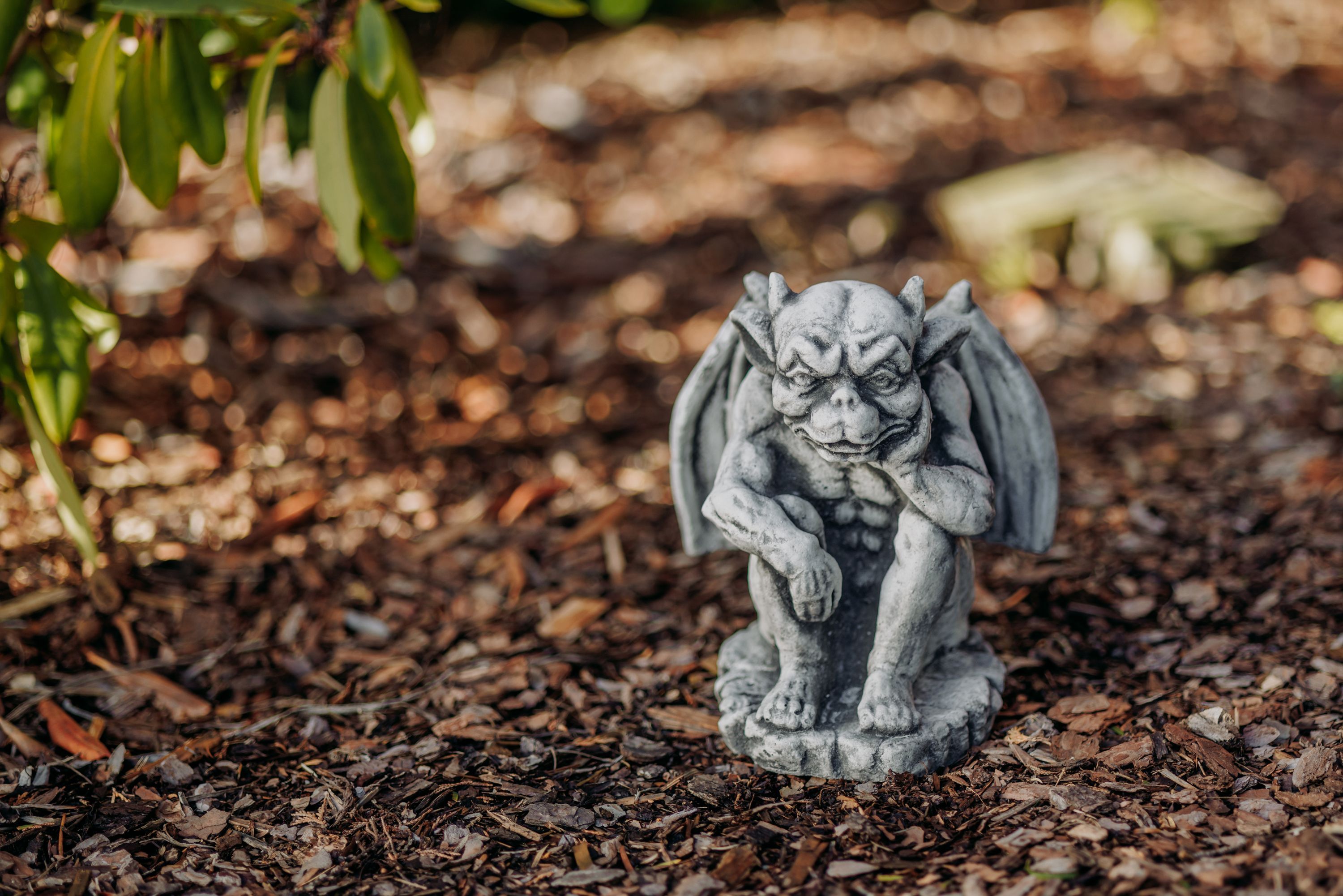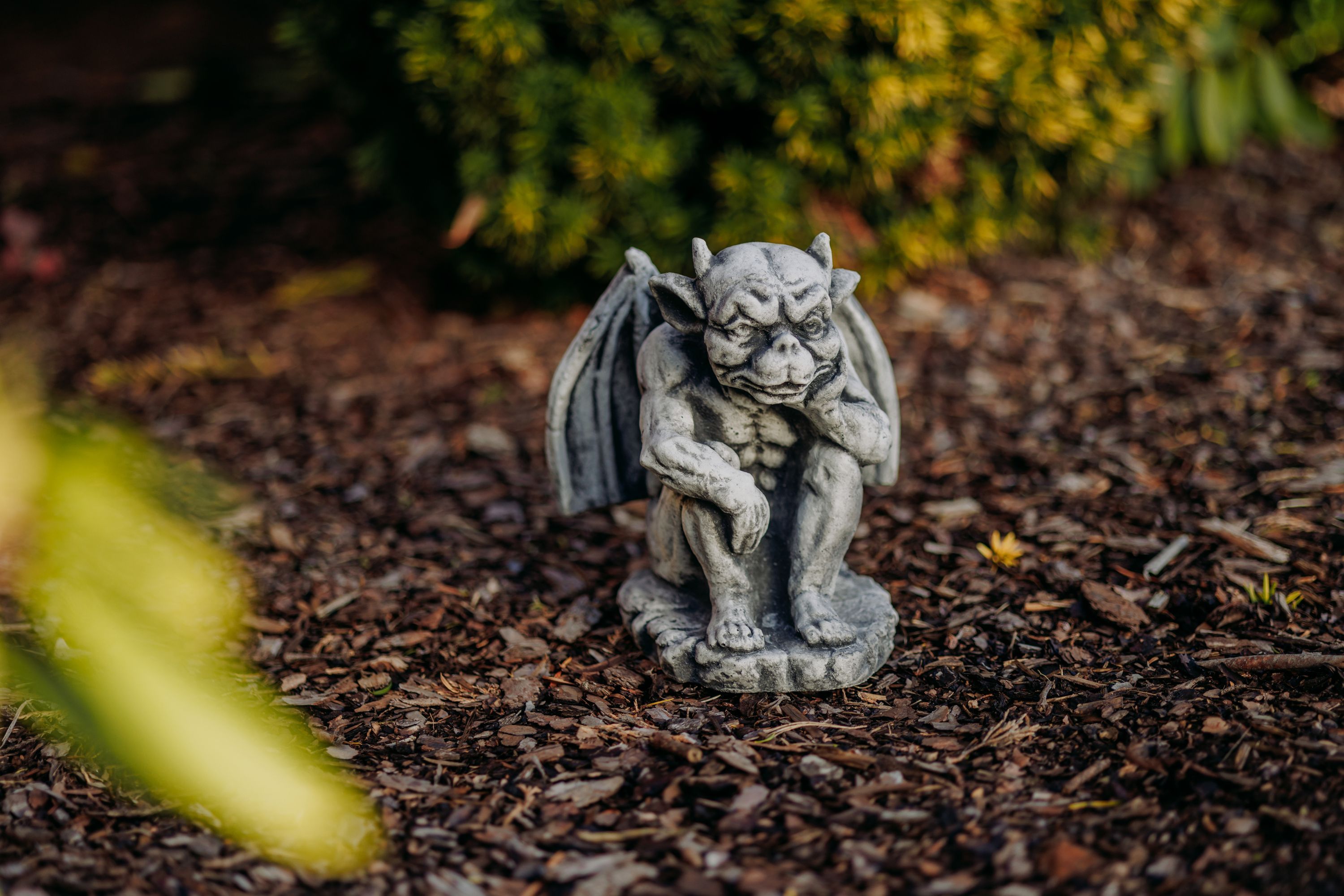Gargoyle Torwächter Gartenfigur, 21 cm Höhe, Steinguss, Grau, frostsicher