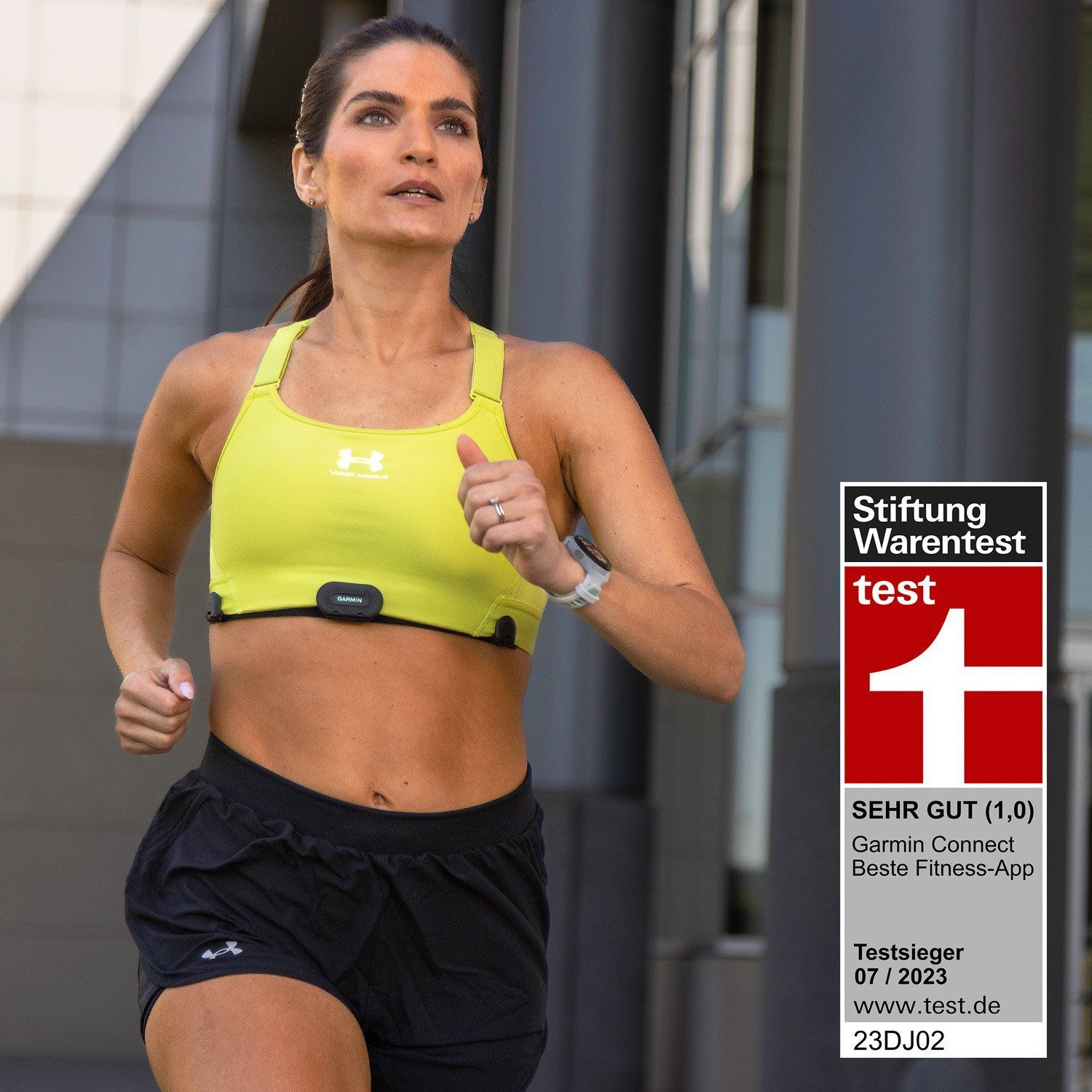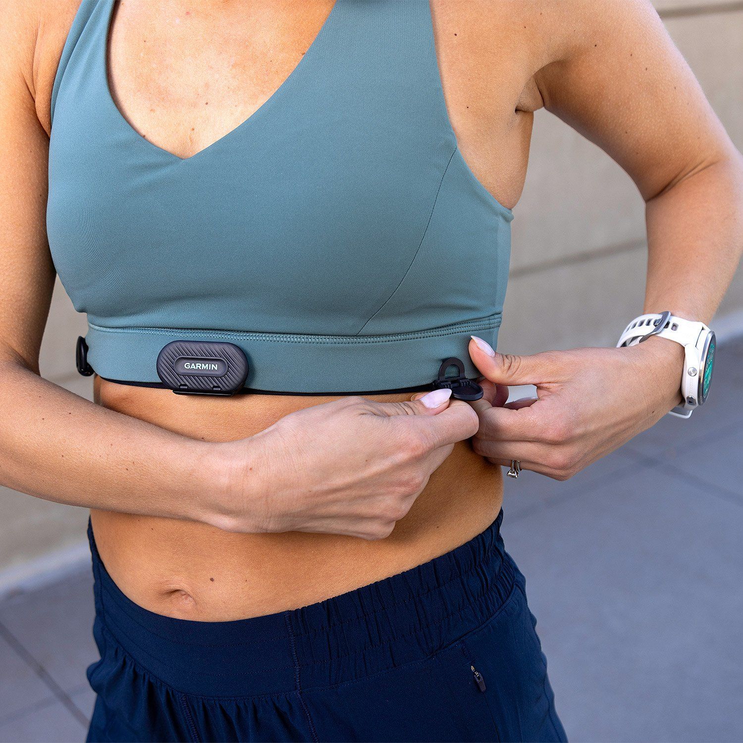 lässt sich mit Hilfe eines Clips direkt an Sport-BHs mit mittlerem/starkem Halt befestigen, Aufzeichnung der Herzfrequenzdaten und Laufeffizienzwerte in Echtzeit, Laufleistung, Bodenkontaktzeit und andere laufspezifische Werte, Senden von Pace und Distanz bei Indoor-Aktivitäten, Physio TrueUp Synchronisierung von Aktivitätsdaten auch ohne Smartwatch, Übertragung der Daten via ANT+ und Bluetooth, Batterielaufzeit bis zu 1 Jahr, einfacher Batteriewechsel möglich, Größe 33,5 x 3,3 x 1,7 cm, wasserd