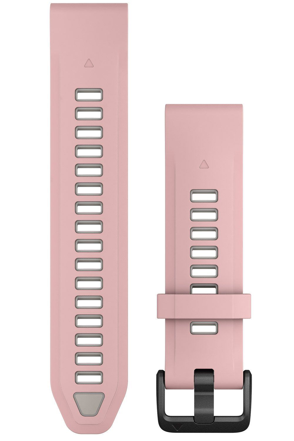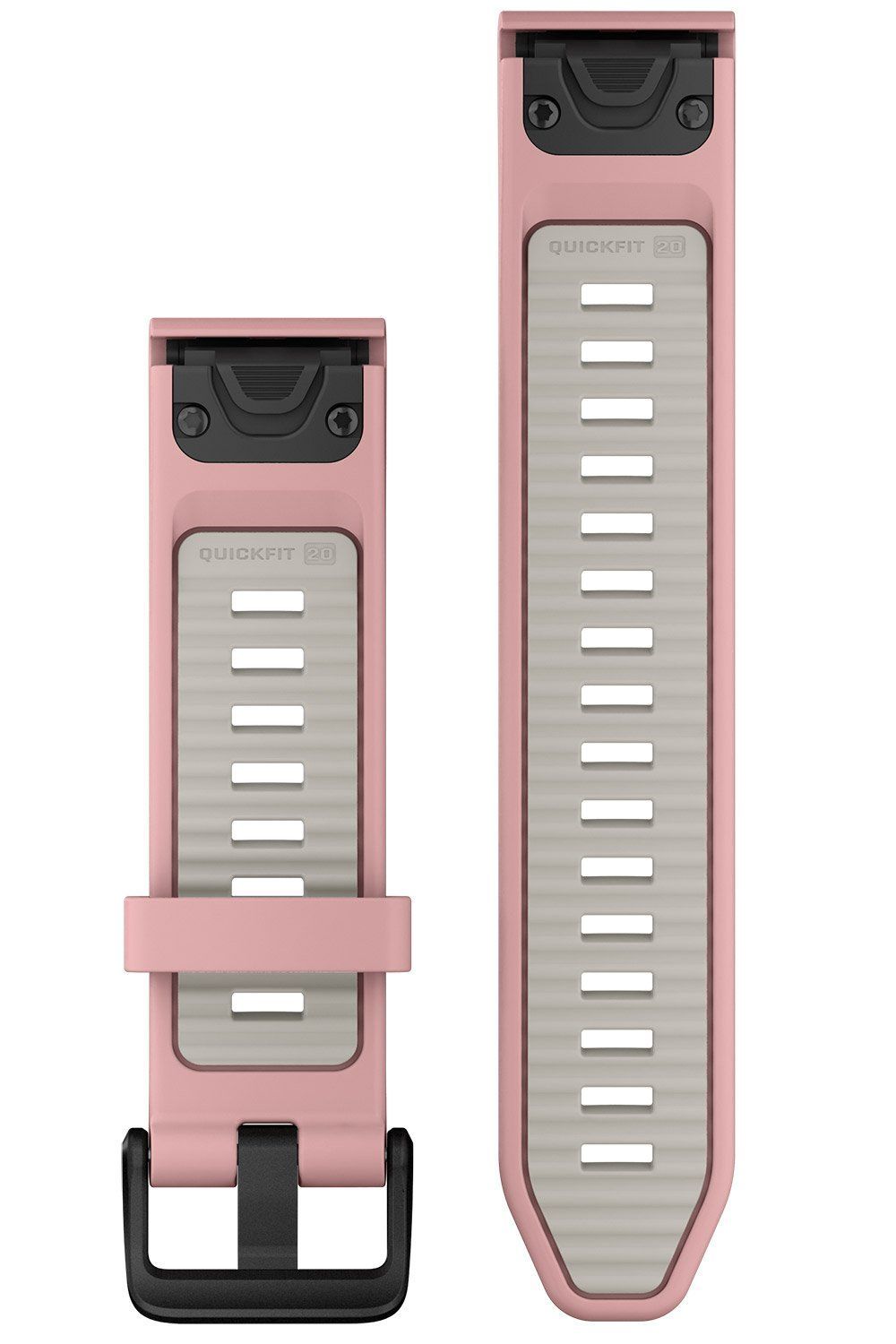 Wechsel-Armband für Garmin Smartwatches aus rosafarbenem Silikon, hellgraue Innenseite, mit 2 Schlaufen, das Einstellband ist 11 cm lang, das Schnallenband ist 8,4 cm lang, berechnen Sie bei der Bestimmung des richtigen Armbandes die Länge des Uhrengehäuses mit ein, Breite 20 mm, matte Edelstahl-Dornschließe, schwarz plattiert, kann einfach und ohne Werkzeug gewechselt werden, geeignet für die Modelle: fenix 43 mm, epix 42 mm, Instinct 2S, D2 43 mm