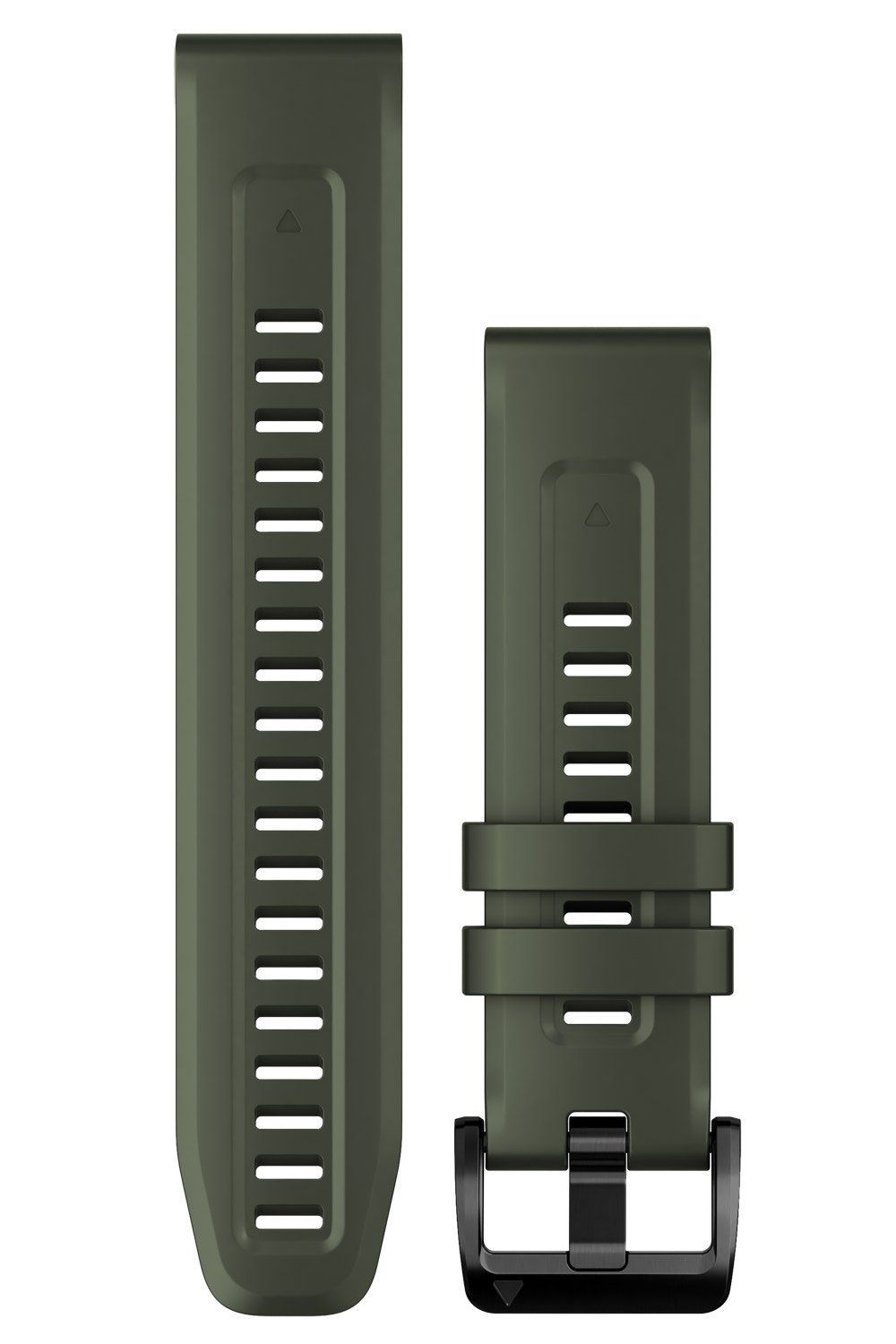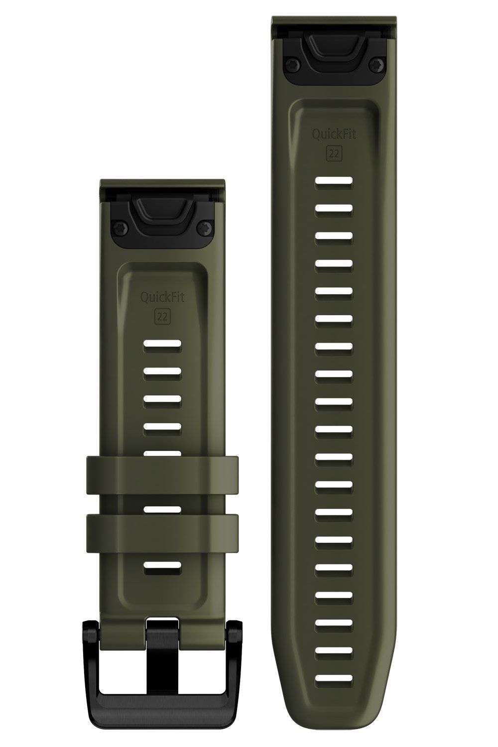 Wechsel-Armband aus moosgrünem Silikon, mit 2 Schlaufen, das Einstellband ist 12,4 cm lang, das Schnallenband ist 9,5 cm lang. Berechnen Sie bei der Bestimmung des richtigen Armbandes die Länge des Uhrengehäuses mit ein, Breite 22 mm, matte Edelstahl-Dornschließe, schwarz plattiert, kann einfach und ohne Werkzeug gewechselt werden, geeignet für die Modelle: fenix 47 mm, epix 47 mm, quatix 47 mm, Instinct 2, D2 47 mm, Approach 47 mm
