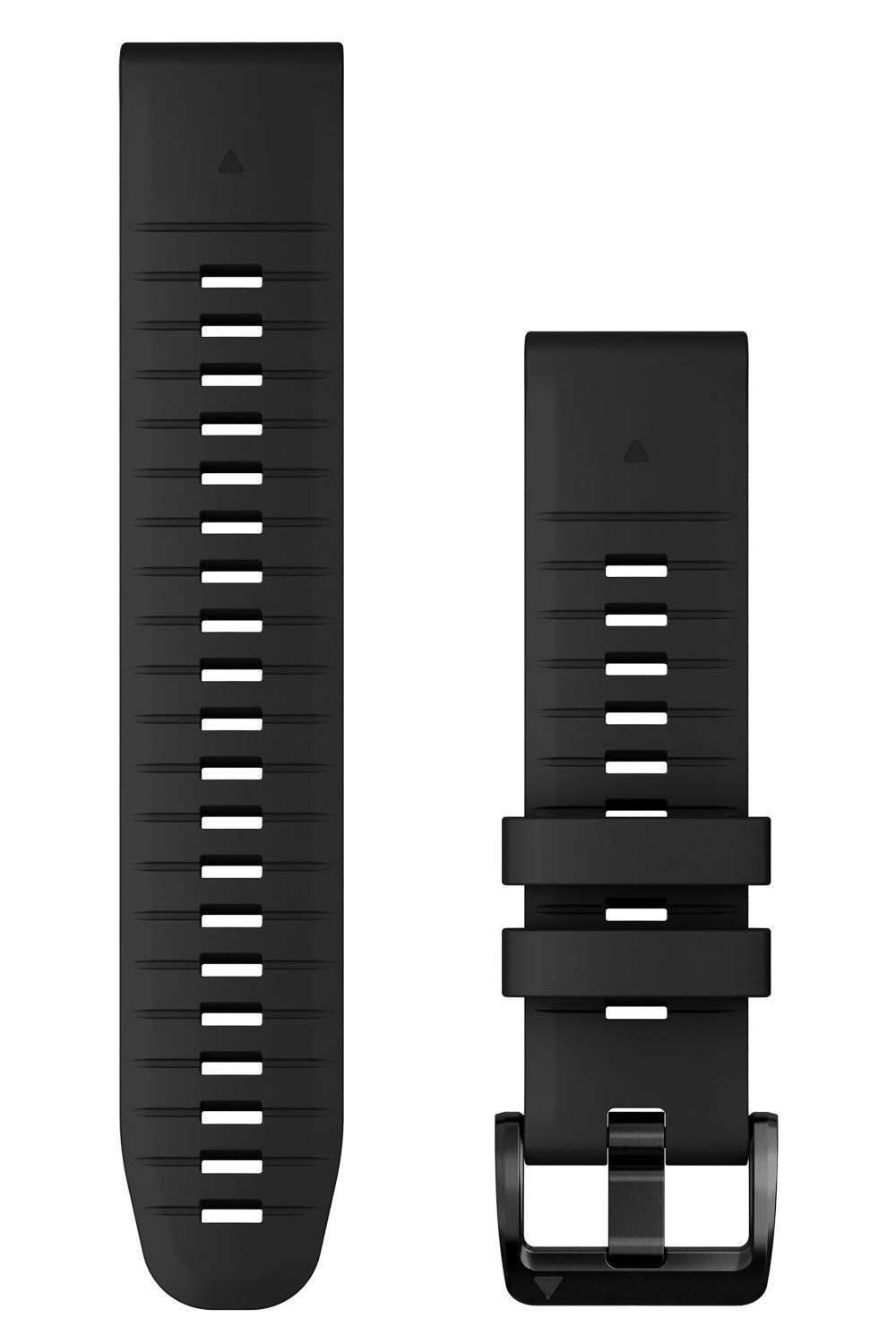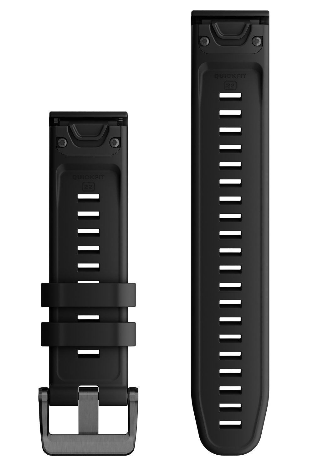 Wechsel-Armband für Garmin Smartwatches aus schwarzem Silikon, mit 2 Schlaufen, das Einstellband ist 12,4 cm lang, das Schnallenband ist 9,5 cm lang. Berechnen Sie bei der Bestimmung des richtigen Armbandes die Länge des Uhrengehäuses mit ein, Breite 22 mm, matte Edelstahl-Dornschließe, schwarz plattiert, das Ersatzband kann einfach und ohne Werkzeug gewechselt werden, geeignet für die Modelle: fenix 47 mm, epix 47 mm, quatix 47 mm, Instinct 2, D2 47 mm, Approach 47 mm