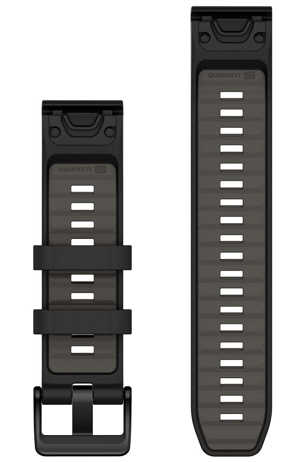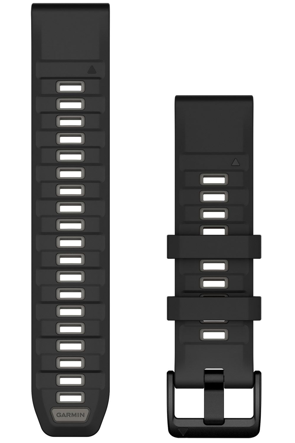 Wechsel-Armband für Garmin Smartwatches aus schwarzem Silikon, hellgraue Innenseite, mit 2 Schlaufen, das Einstellband ist 12,4 cm lang, das Schnallenband ist 9,5 cm lang, berechnen Sie bei der Bestimmung des richtigen Armbandes die Länge des Uhrengehäuses mit ein, Breite 22 mm, matte Edelstahl-Dornschließe, schwarz plattiert, kann einfach und ohne Werkzeug gewechselt werden, geeignet für die Modelle: fenix 47 mm, epix 47 mm, quatix 47 mm, Instinct 2, D2 47 mm, Approach 47 mm