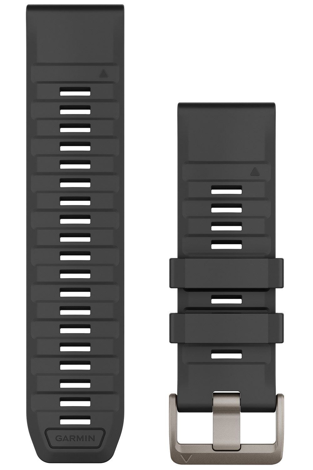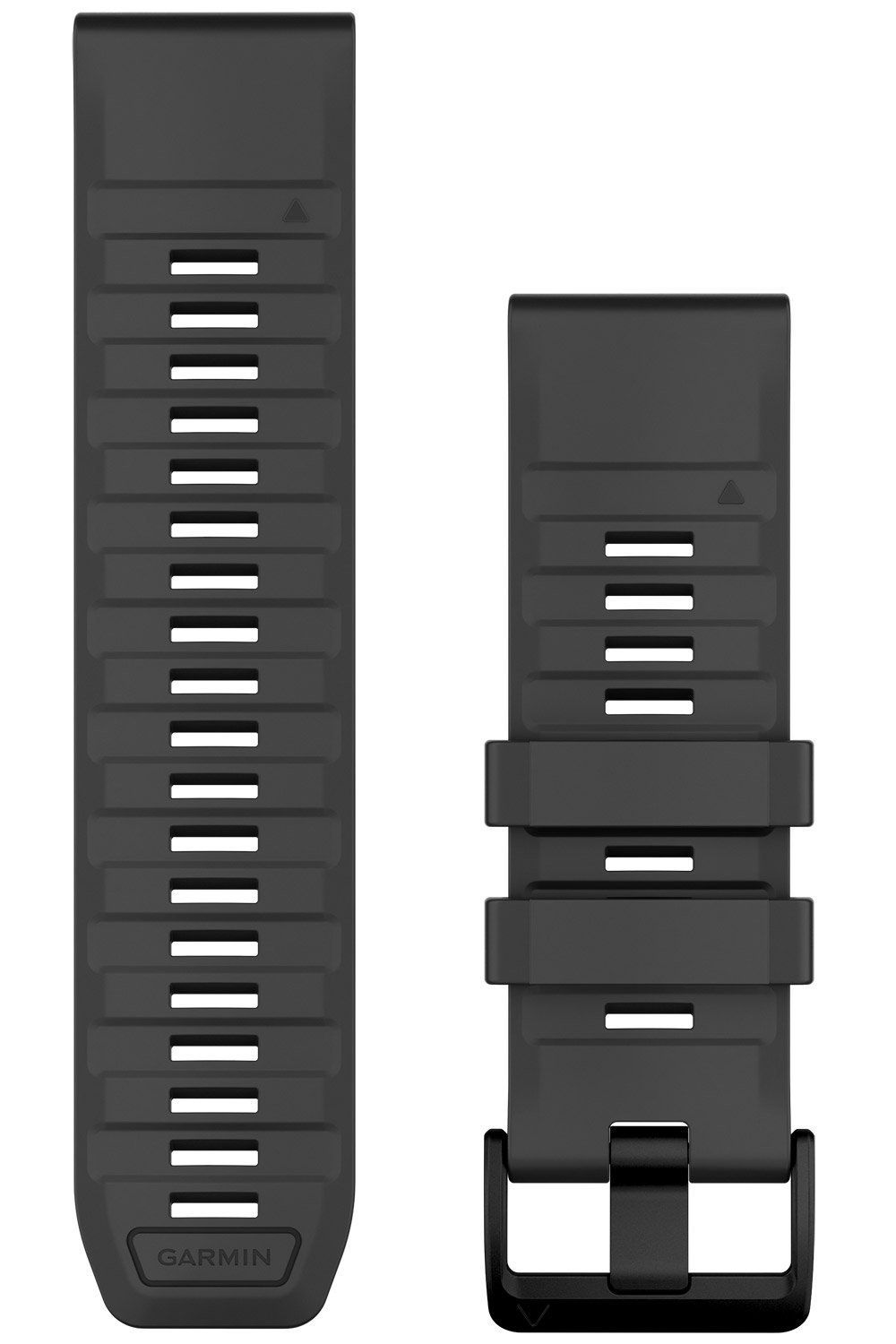 Wechsel-Armband für Garmin Smartwatches aus dunkelgrauem Silikon, mit 2 Schlaufen, das Einstellband ist 12,4 cm lang, das Schnallenband ist 9,5 cm lang, berechnen Sie bei der Bestimmung des richtigen Armbandes die Länge des Uhrengehäuses mit ein, Breite 26 mm, matte Edelstahl-Dornschließe, schwarz plattiert, kann einfach und ohne Werkzeug gewechselt werden,geeignet für die Modelle: fenix 51 mm, tactix, epix 51 mm, quatix 51 mm, Instinct 2X, D2 51 mm, Descent 51 mm, Enduro