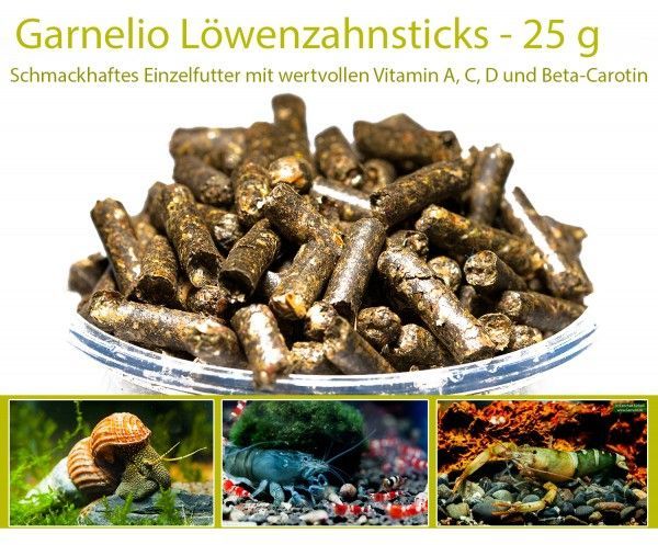 Garnelio - Löwenzahn Sticks - 25 g - Vitaminbombe für Wirbellose