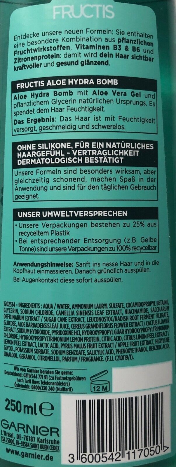 Garnier Garnier Fructis ALOE HYDRA BOMB Kräftiges Schampoo 250ml Flasche (Gr. Standardgröße)
