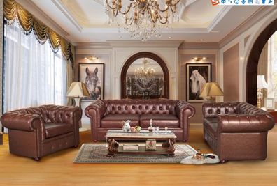 Antik Stil Chesterfield Sofagarnitur Couch Polster Garnitur Garnituren Ledersofa