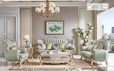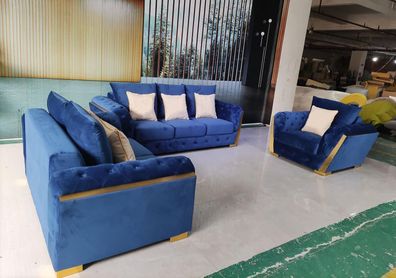 Chesterfield Sofa Couch Garnitur Sofagarnitur Couchen Möbel Blau 3tlg
