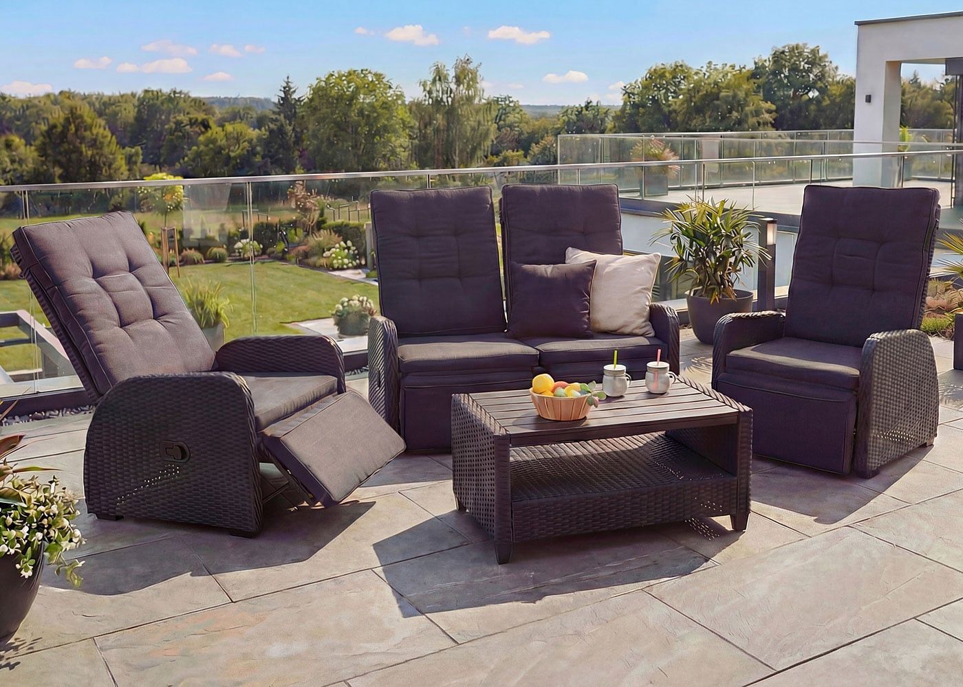 Mendler Garnitur HWC-J35, Lounge-Set Sitzgruppe Sofa, Spun Poly halbrundes Poly-Rattan