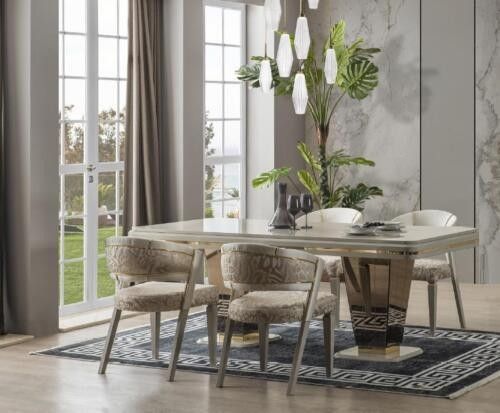 Garnitur Luxus Essgruppe Esszimmer Esstisch Stühle Essecke Beige 7tlg