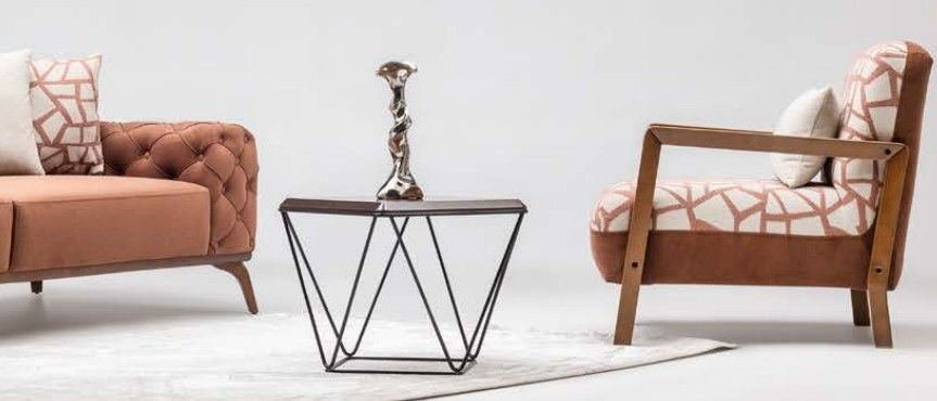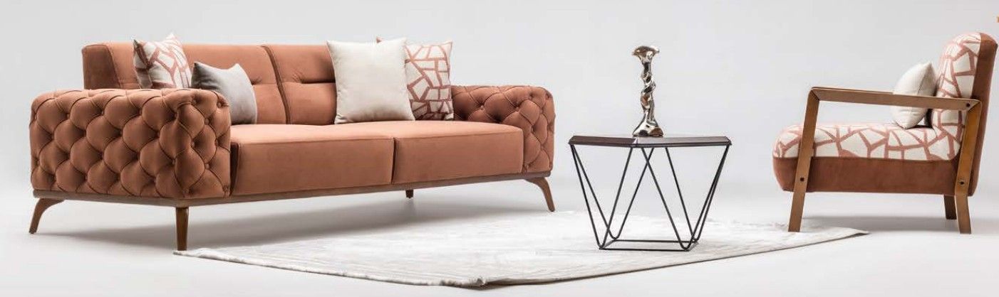 Garnitur Stoffsofa Dreisitzer Sofa Sessel Counch Polstersofa Orange