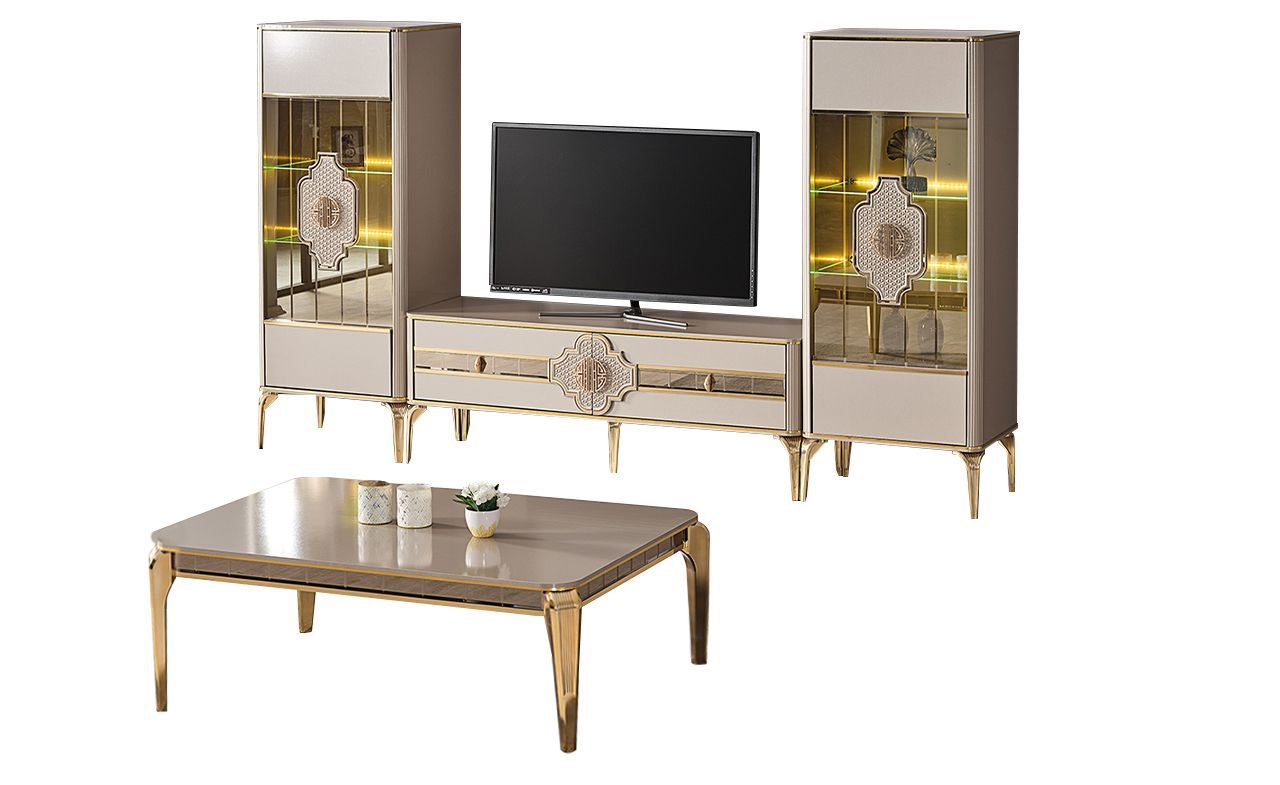 Garnitur Wohnzimmer Tv Ständer Vitrinen Couchttisch 4Tlg Schrank Beige