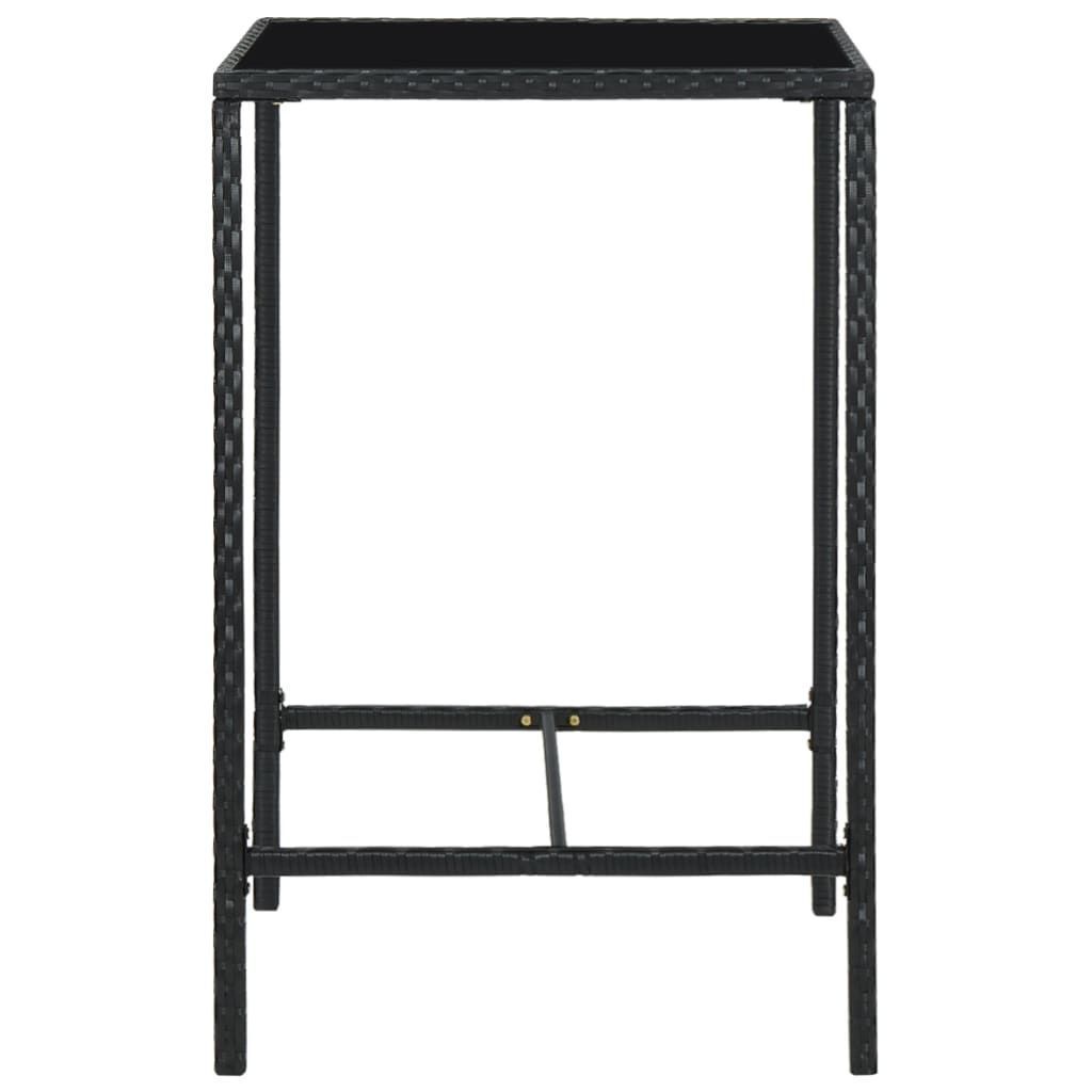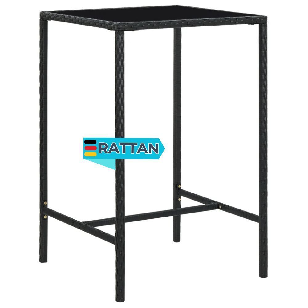 Garten-Bartisch JONI Schwarz 70x70x110 cm Poly Rattan und Glas Gartentisch Rattan