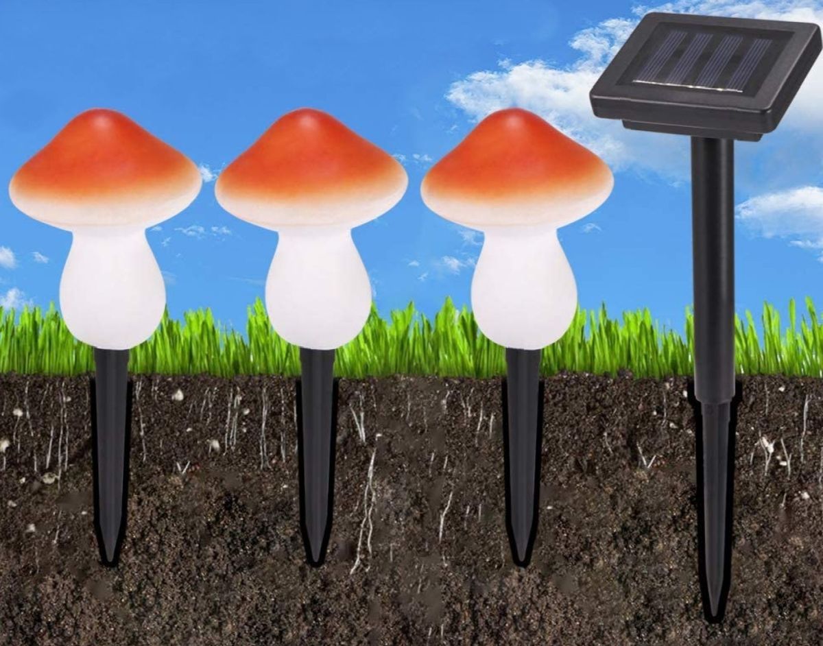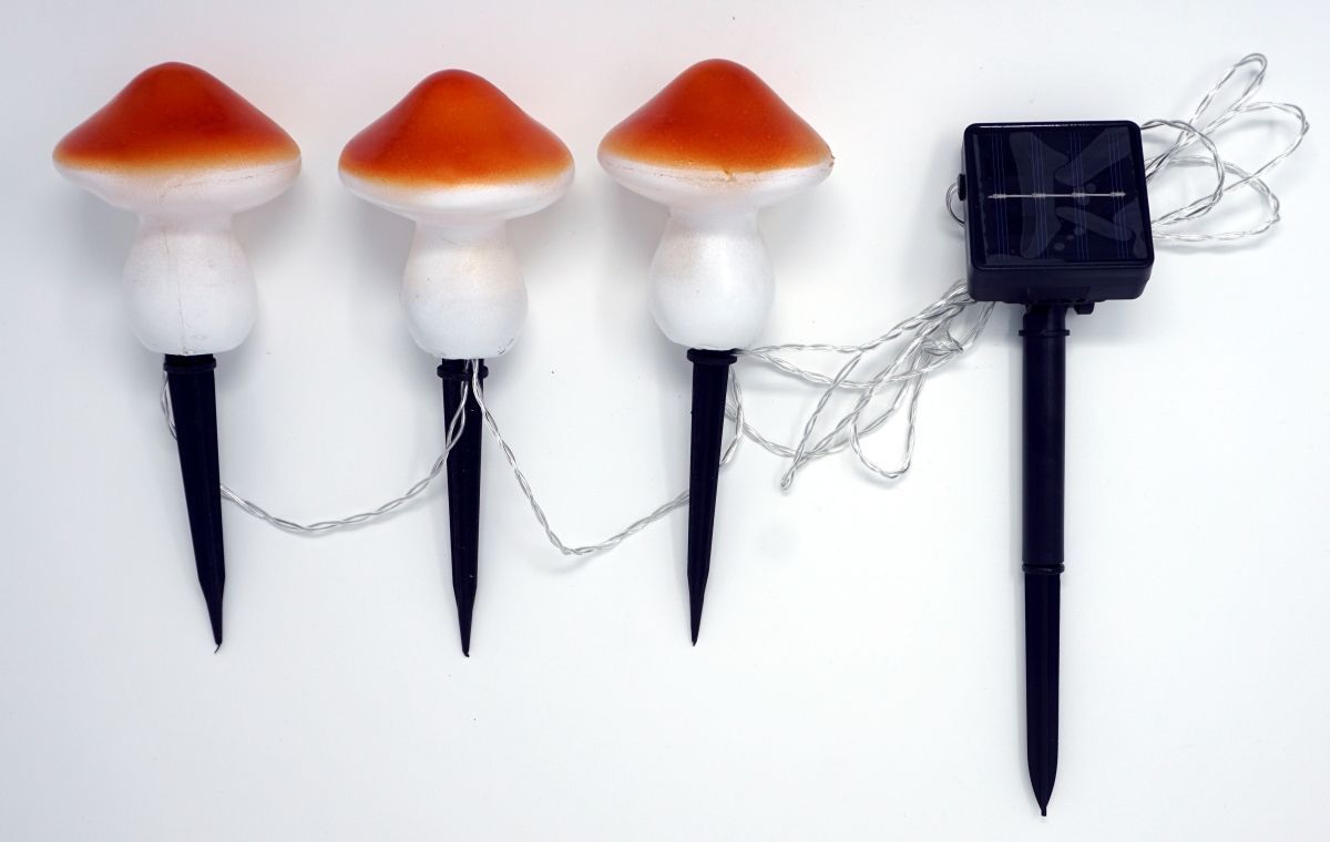 Garten Deko Lampen Leuchten 3 Pilze LED Gartenleuchte Solarbetrieb