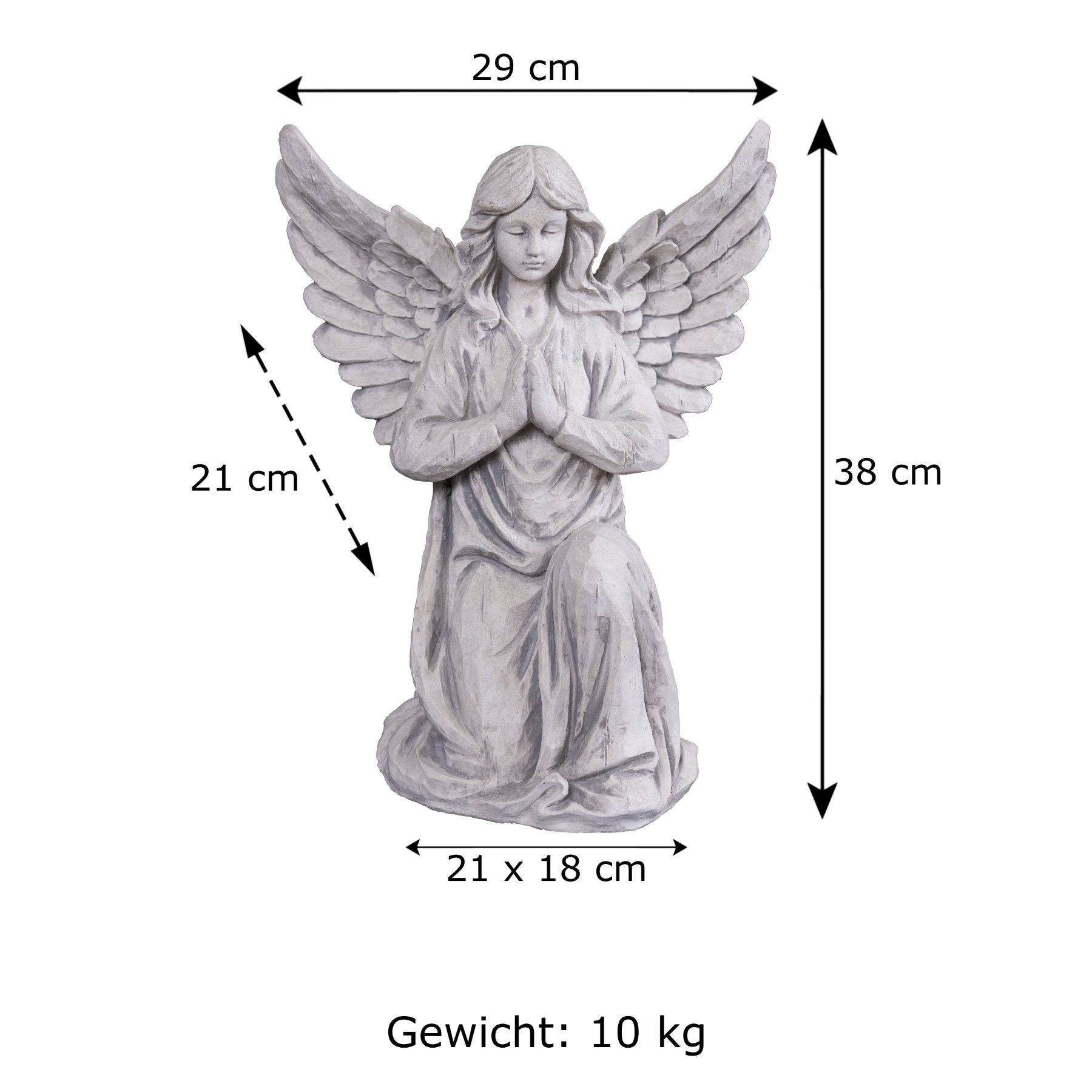 Garten Engel Steinfigur, Betend, 39 cm Höhe, Weißbeton, 10 kg, Grau, frostsicher