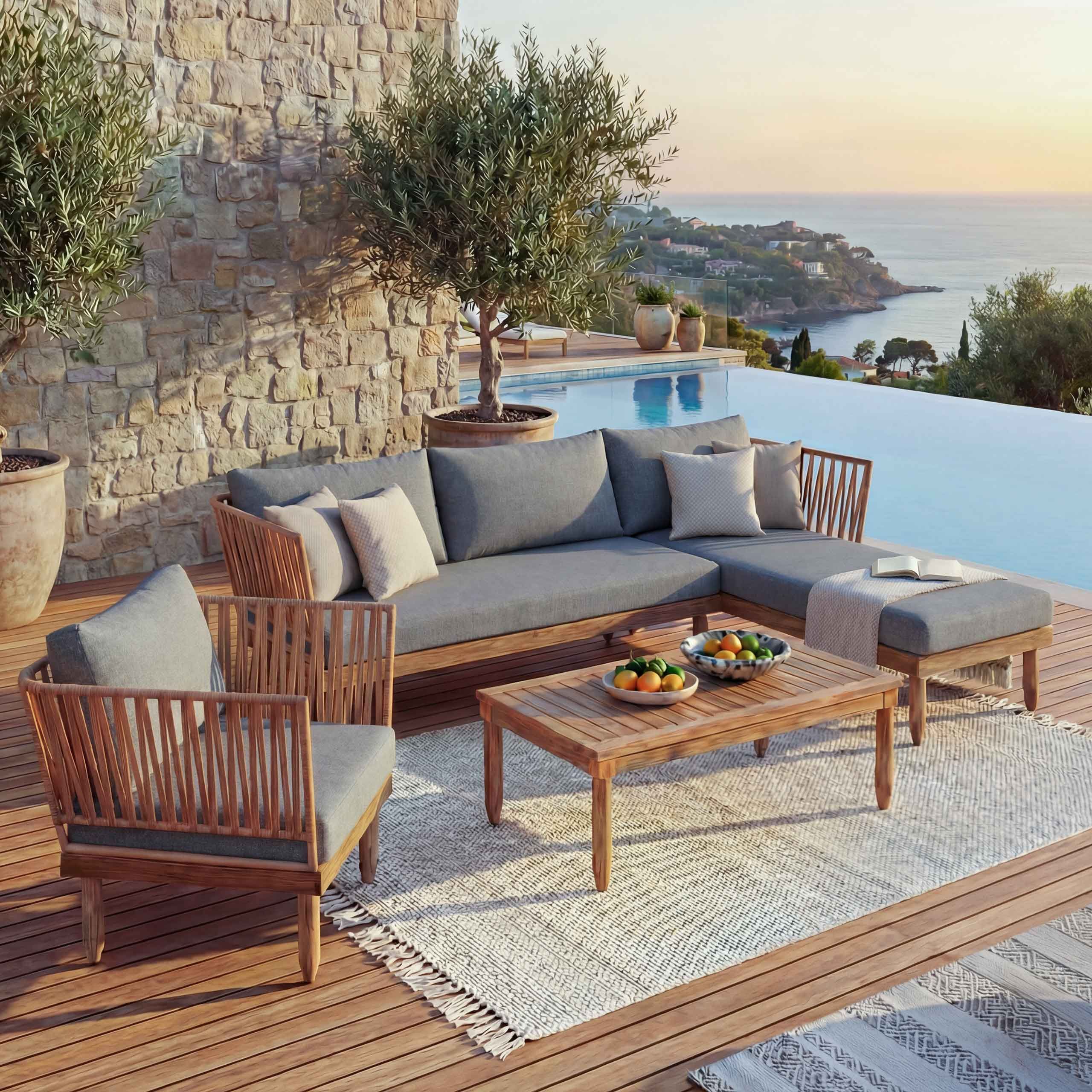 Mendler Garten-Garnitur HWC-L29, Garnitur Sitzgruppe Lounge-Set Sofa, Akazie Holz FSC