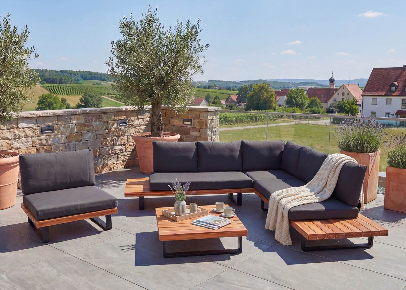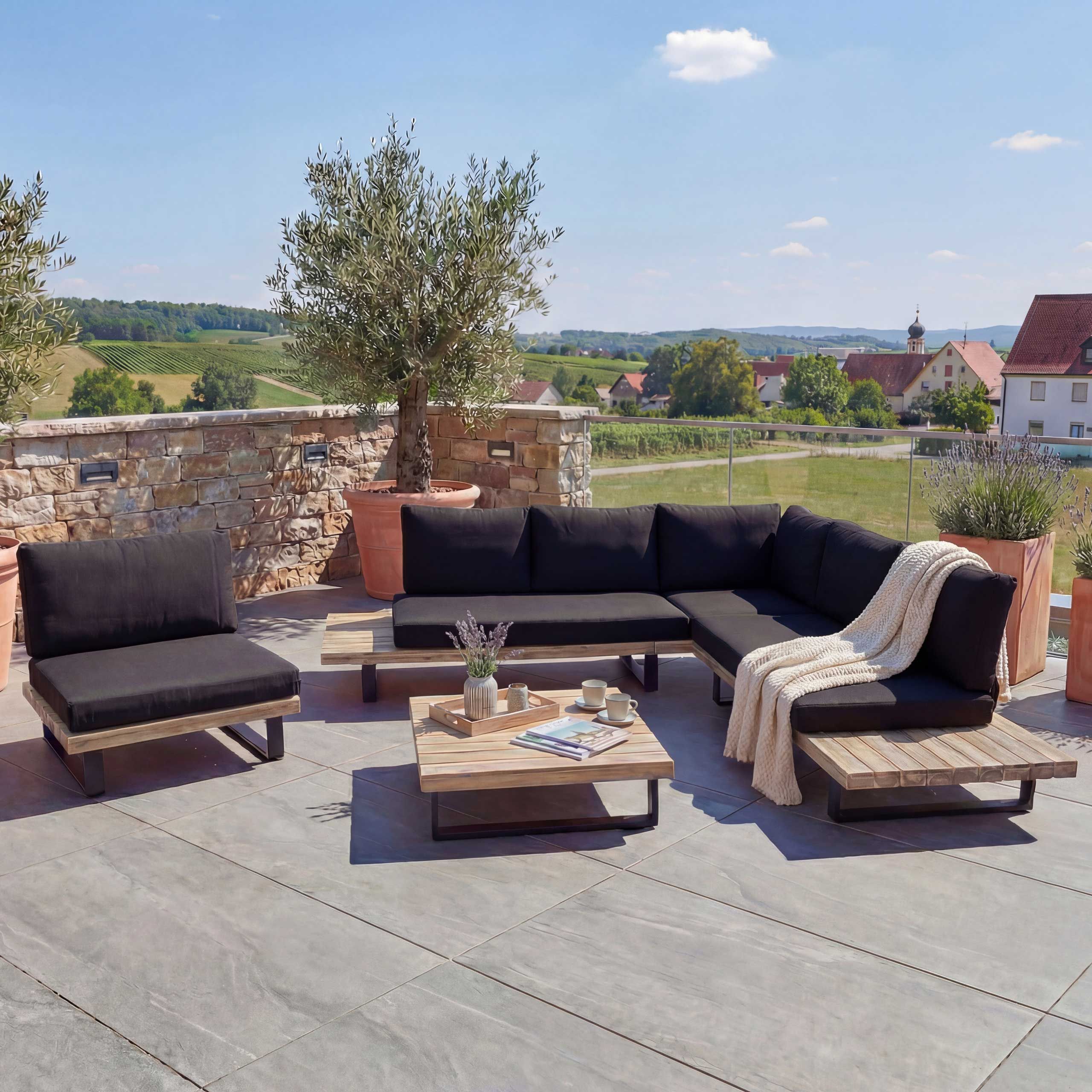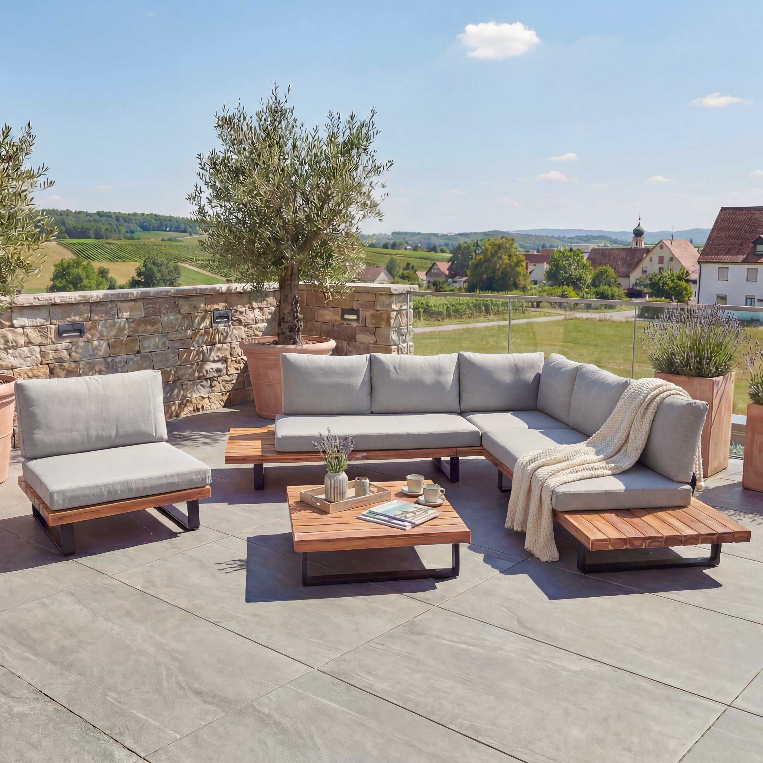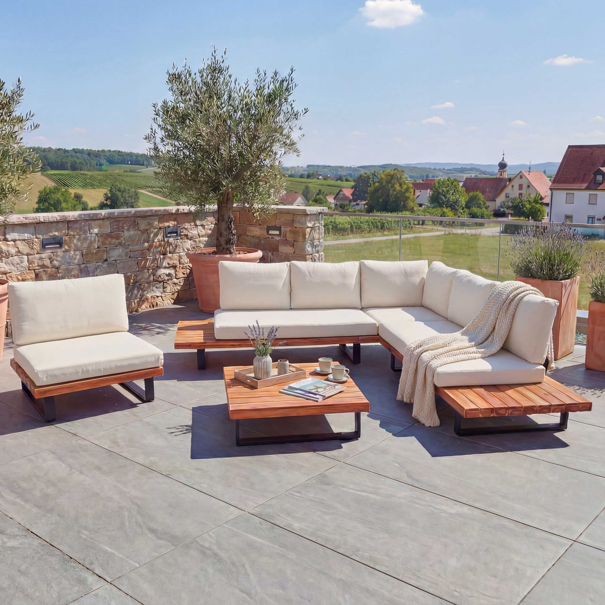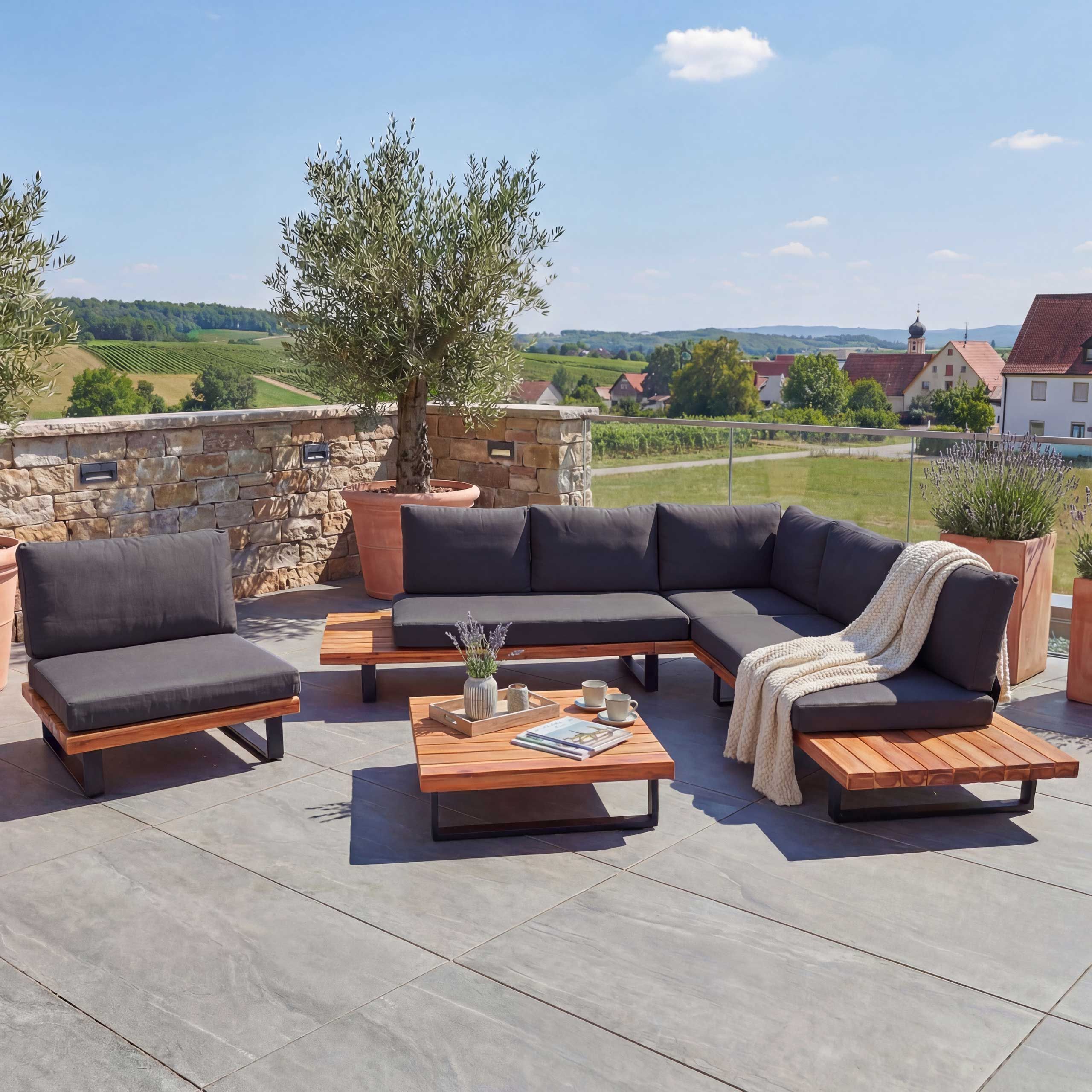 Mendler Garten-Garnitur mit Sessel HWC-H54, Lounge-Set Sofa, Spun Poly Akazie Holz FSC