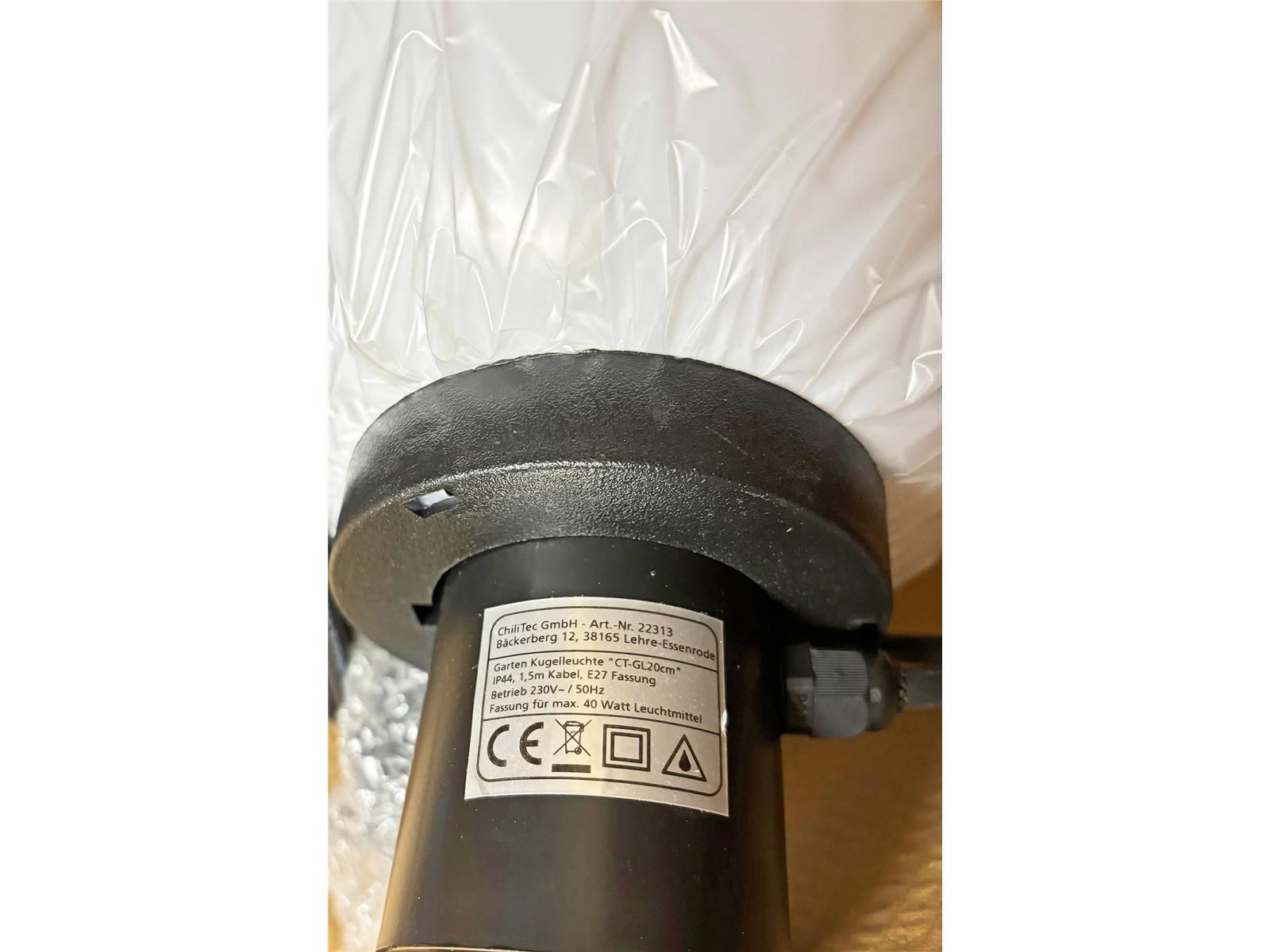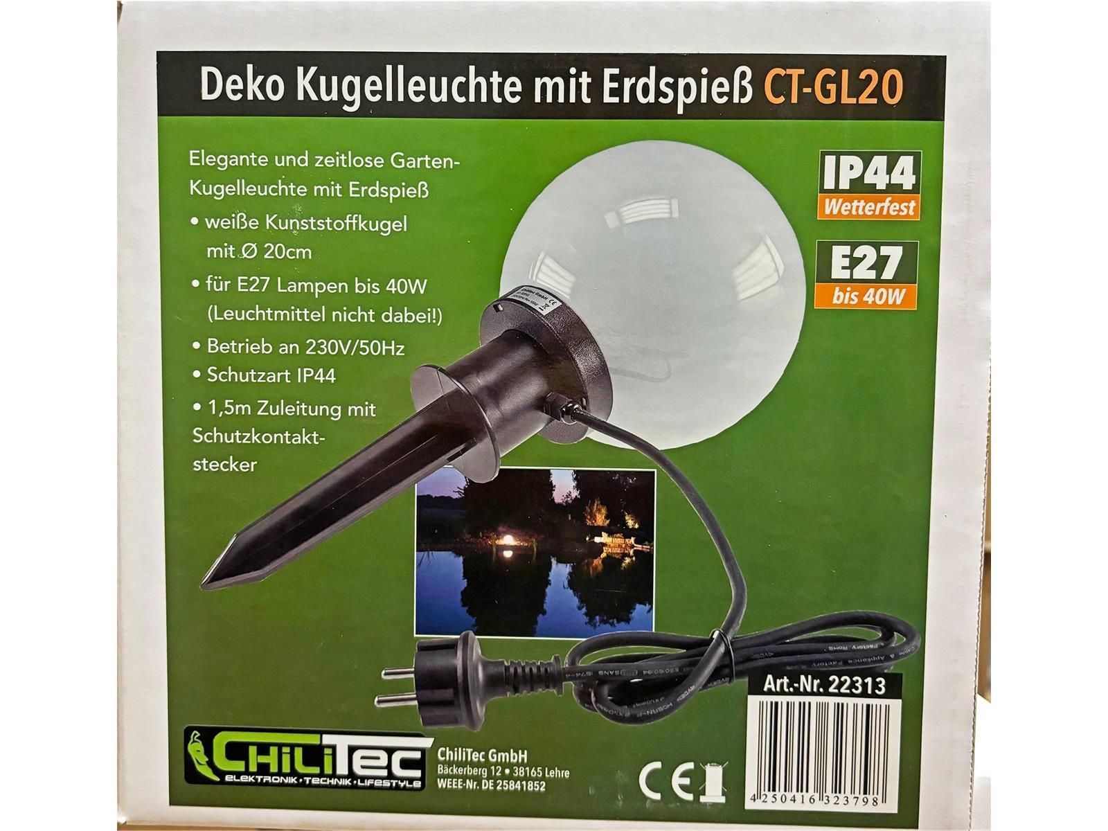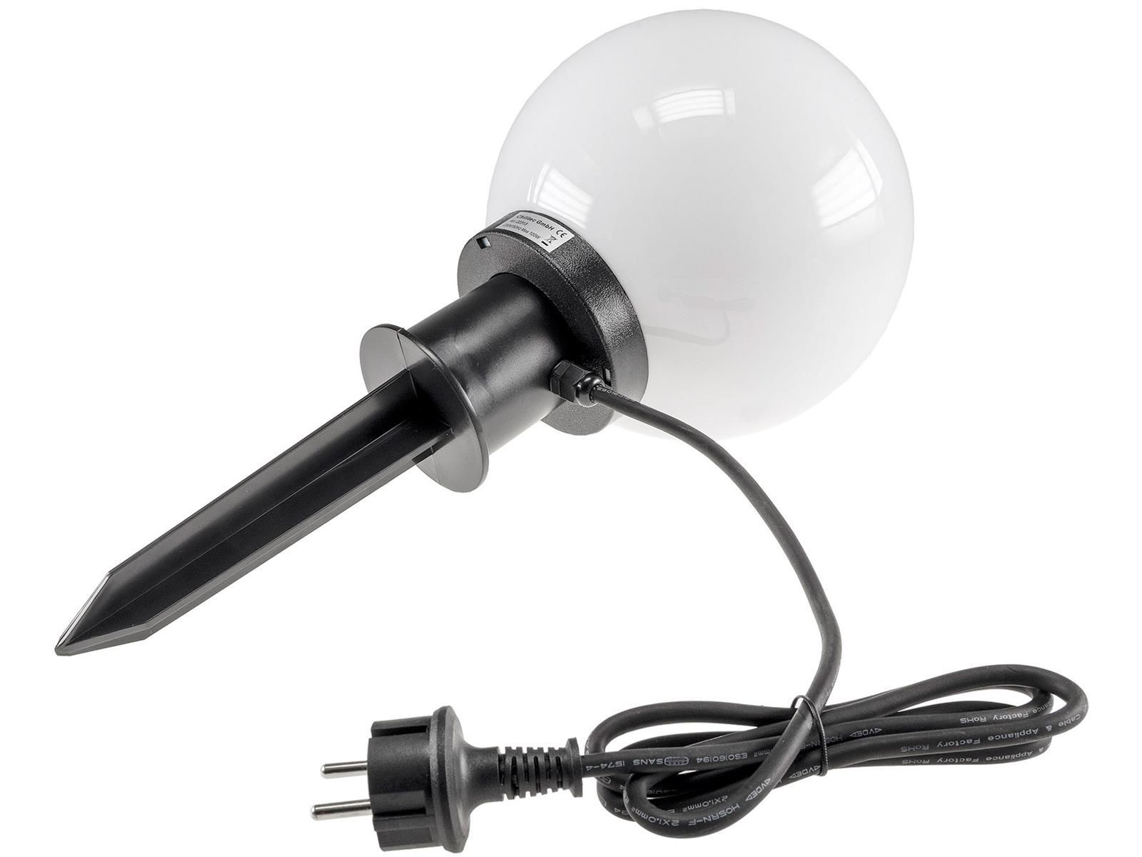 ChiliTec Garten Kugelleuchte Erdspieß CT-GL20cm IP44, 230V, 1,5m Kabel, E27 Fassung