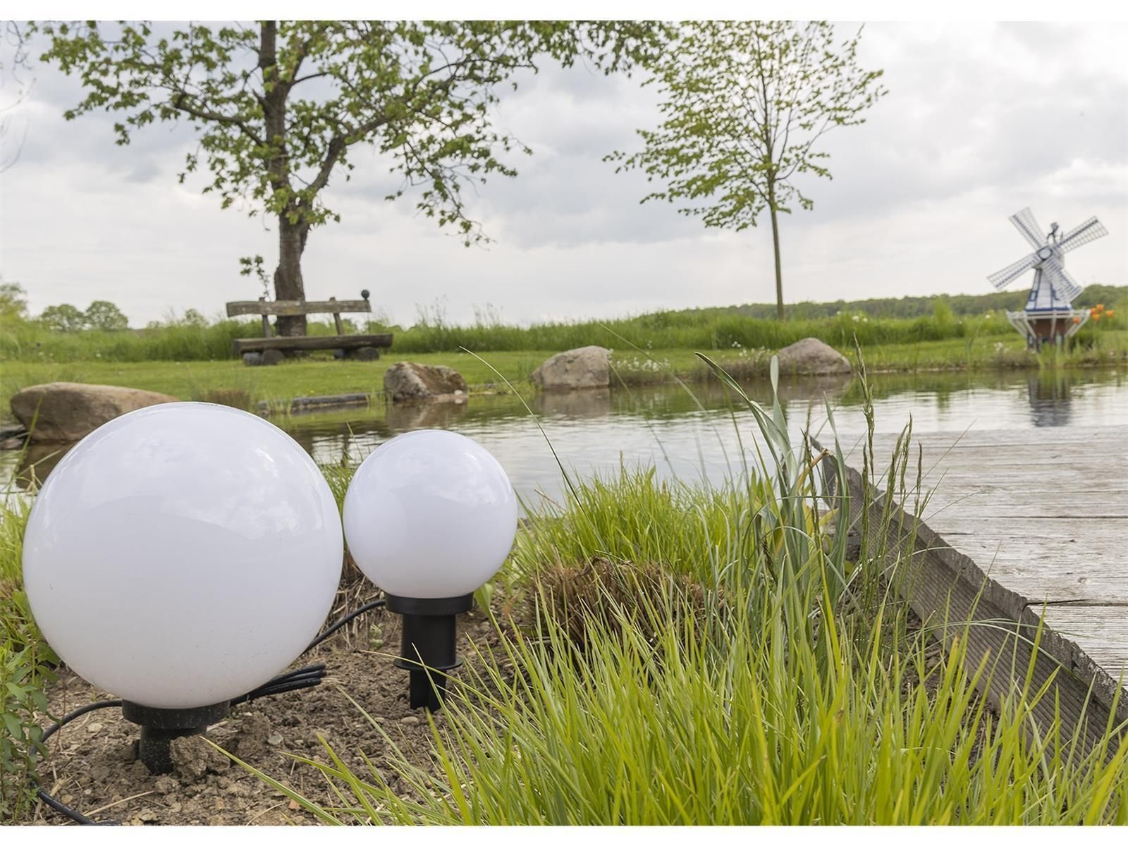 ChiliTec Garten Kugelleuchte Erdspieß "CT-GL20cm"IP44, 230V, 1,5m Kabel, E27 Fassung