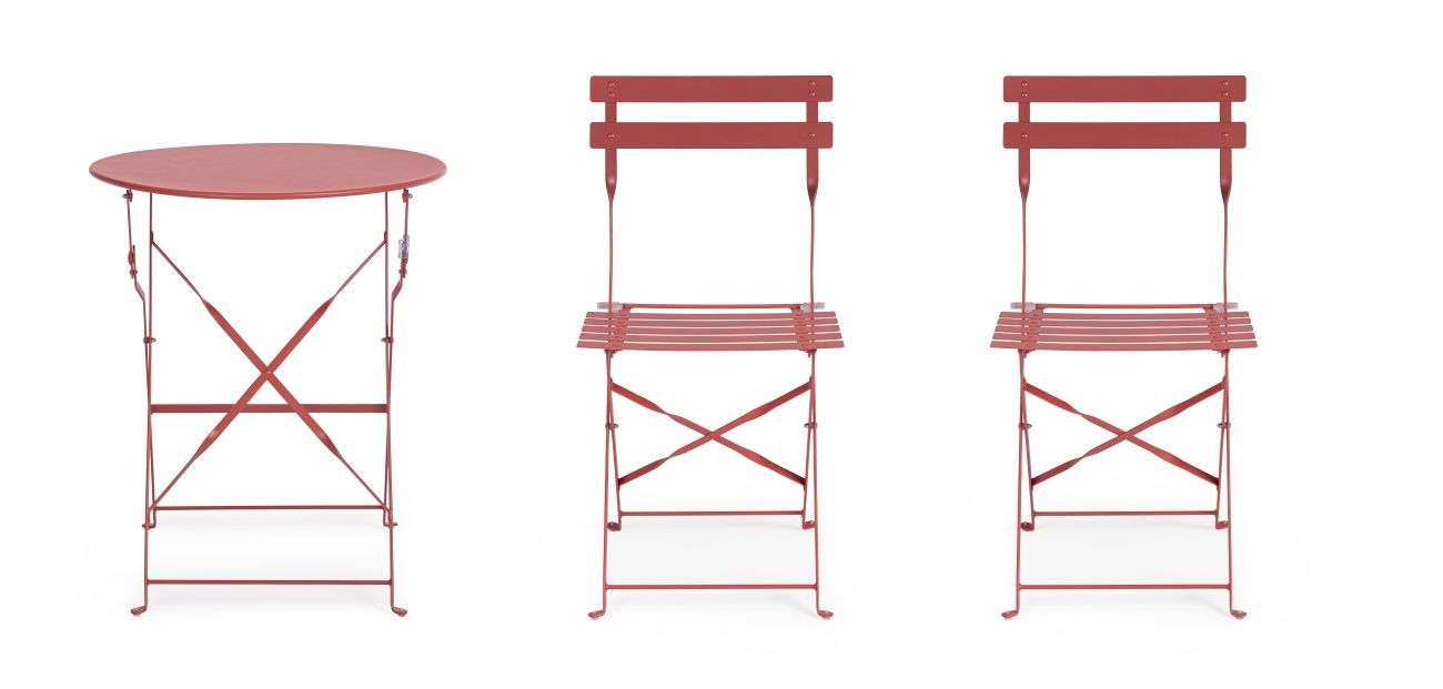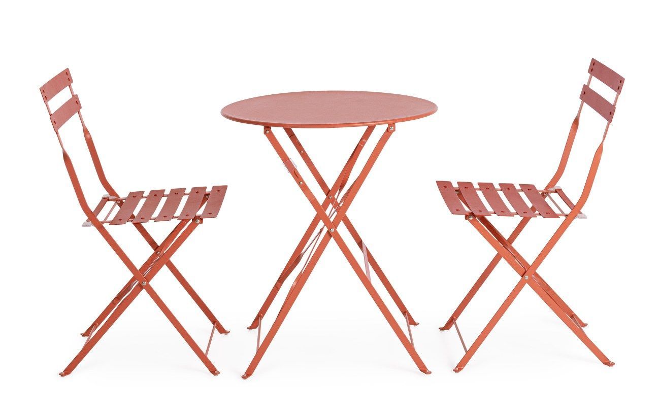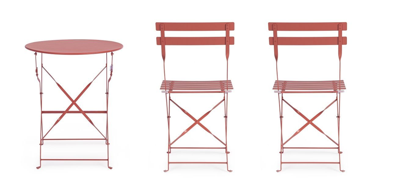 Garten-Set Austin Metall, klassisch klappbar, Terrakotta, Stühle und Tisch für