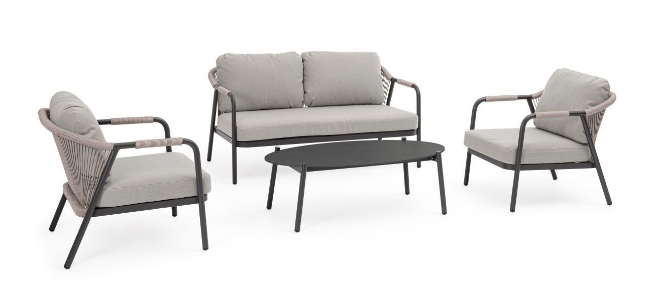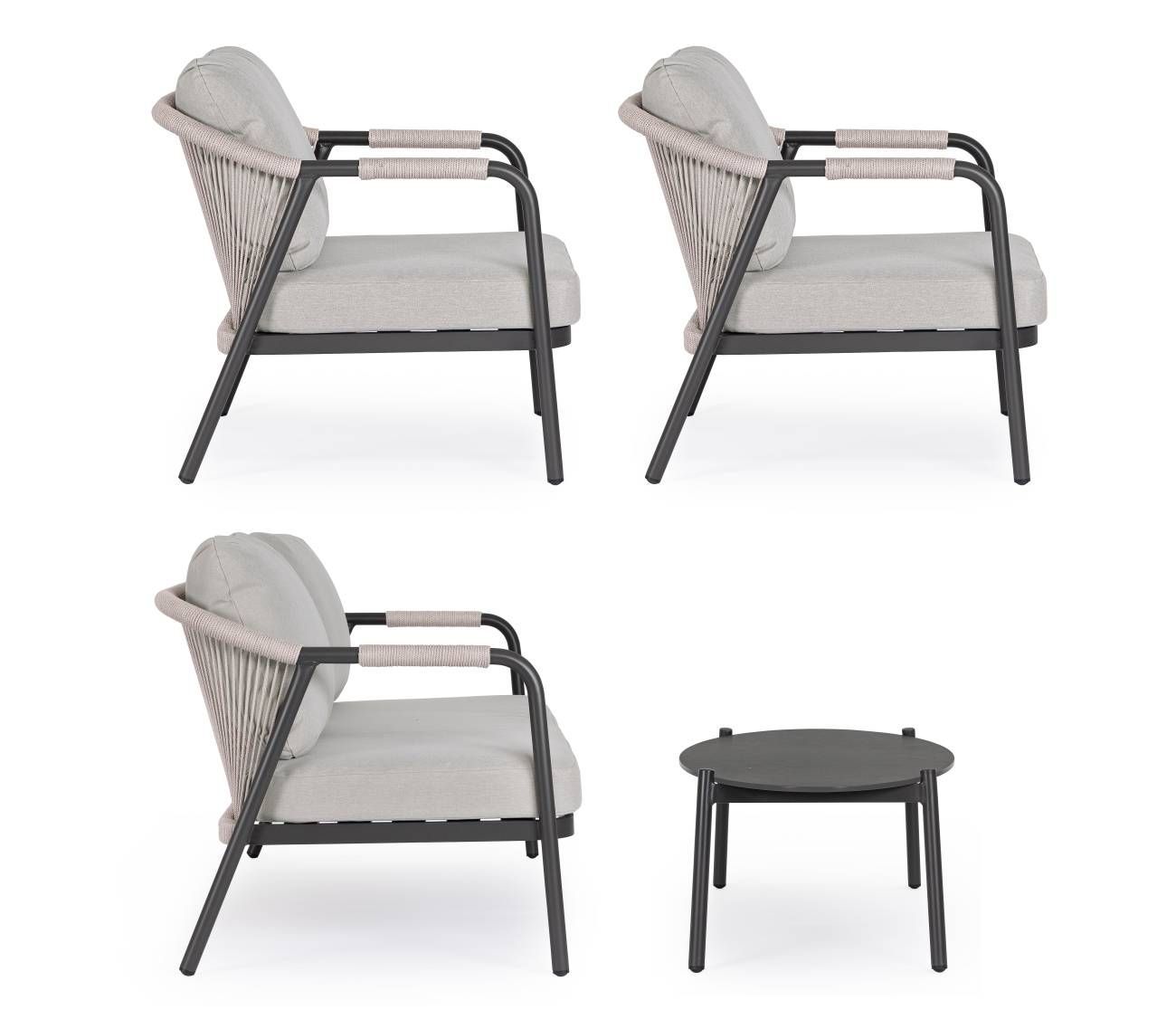 Garten-Set Miravet Aluminium, modern gepolstert, anthrazit taupe, abnehmbarer